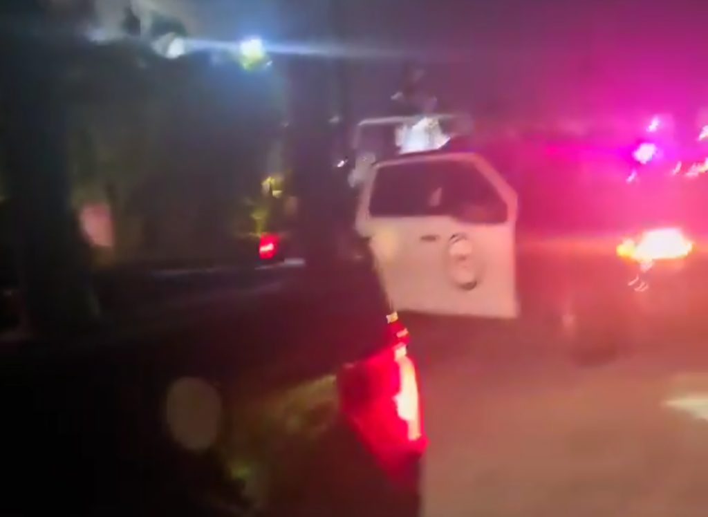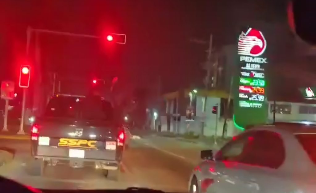 A tal grado, de salir del fraccionamiento y grabar el comboy de camionetas que circularon en el Bulevard de las Naciones.
