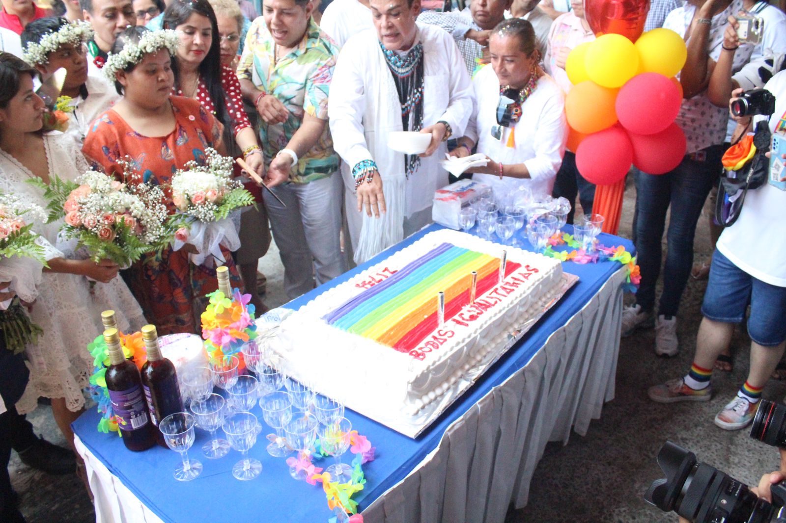 Miembros de la comunidad LGBT, así como familiares de los contrayentes y las parejas que esperaban casarse, se hicieron presentes en el acto protocolario que por primera vez se lleva a cabo en el estado de Guerrero.