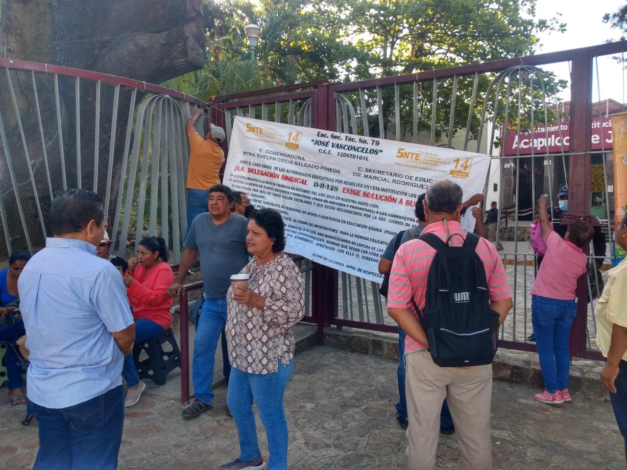 Acapulco,Gro., a 22 de marzo del 2023.-Por segundo día consecutivo, profesores de escuelas secundarias técnicas de la zona 11 de Acapulco cerraron el Ayuntamiento del Parque Papagayo para exigir el pago de adeudos y el nombramiento definitivo de maestros.