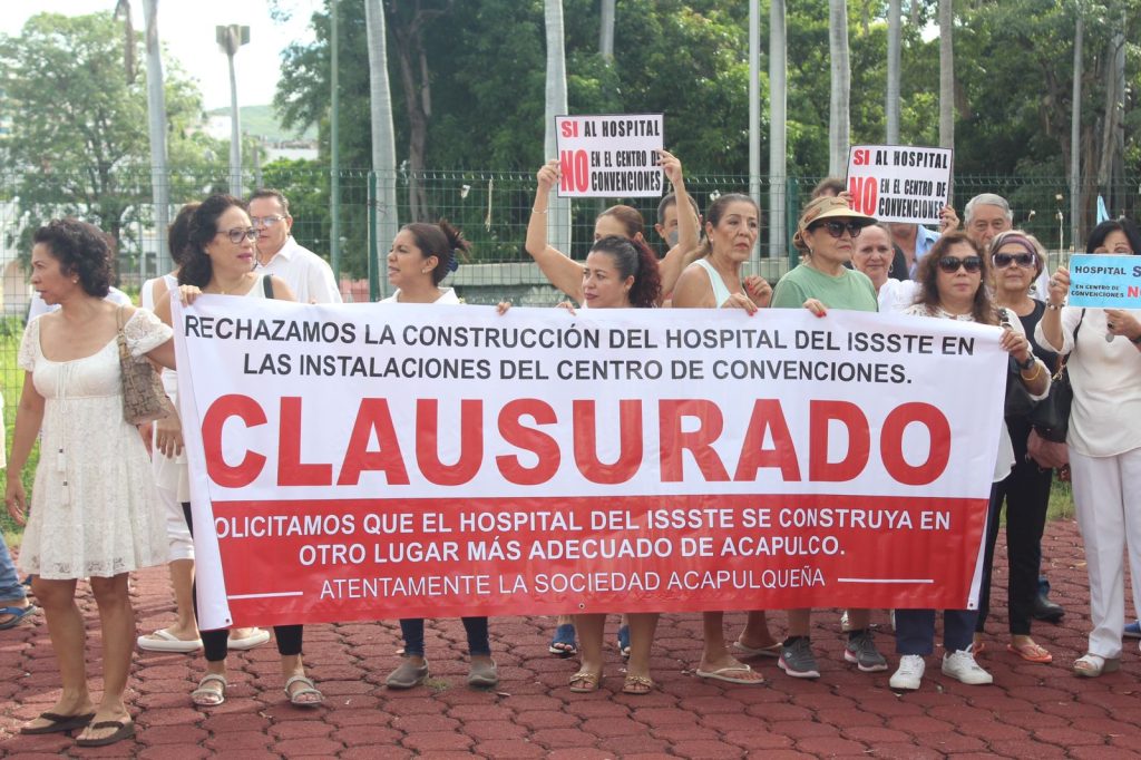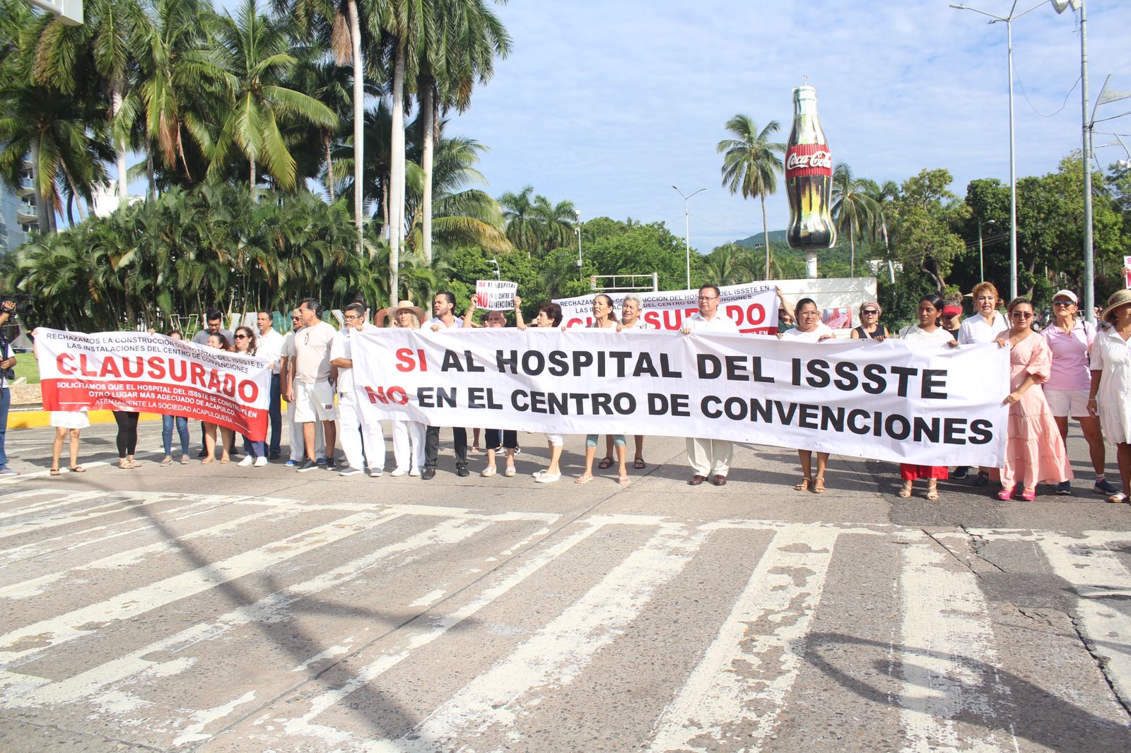 Por tercera ocasión, colonos del fraccionamiento Costa Azul protestaron a las afueras del Centro Internacional Acapulco (CIA) para reiterar su rechazo a la construcción del Hospital del ISSSTE en Acapulco.