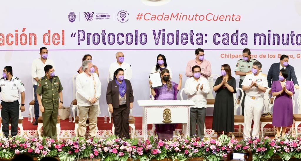 En el evento de presentación oficial, la gobernadora Evelyn Salgado Pineda, firmó el Decreto de la Creación del Programa “Protocolo Violeta” en Guerrero, así como de los convenios de colaboración entre Gobierno Federal, Secretarías de Seguridad, Municipios, Fiscalías y Sector Empresarial para la implementación del mismo en favor de las mujeres guerrerenses.