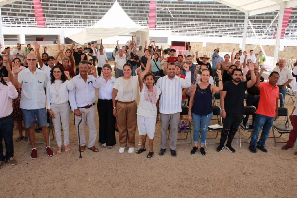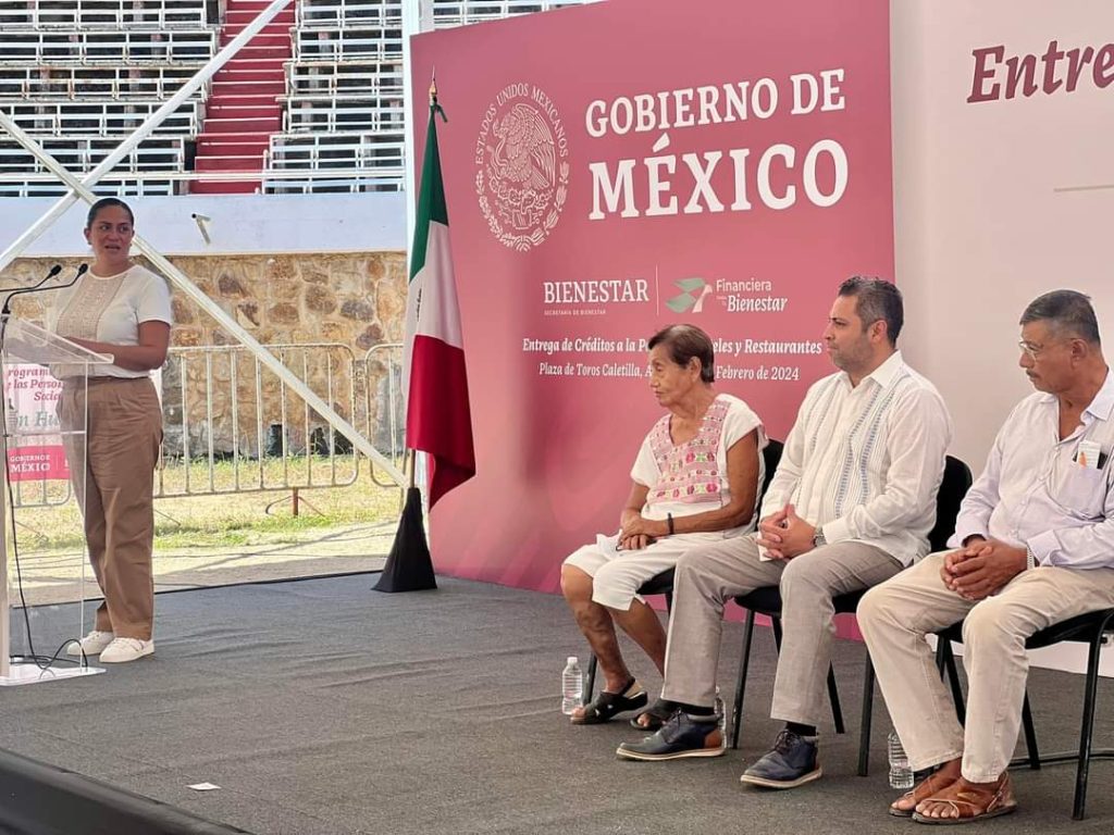 Lo anterior, en el marco de la entrega de créditos a la Palabra destinados a Hoteles y Restaurantes afectados por el huracán Otis que se llevó a cabo en la plaza de toros en Caletilla.