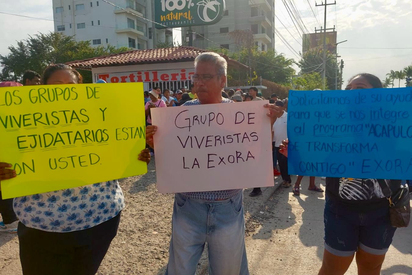 Prestadores de servicios turísticos de la zona de playa Diamante, viveristas y transportistas realizaron una marcha para exigir a las autoridades del Gobierno Federal sean incluidos en los trabajos de transición como Centro Integralmente Planeado (CIP).