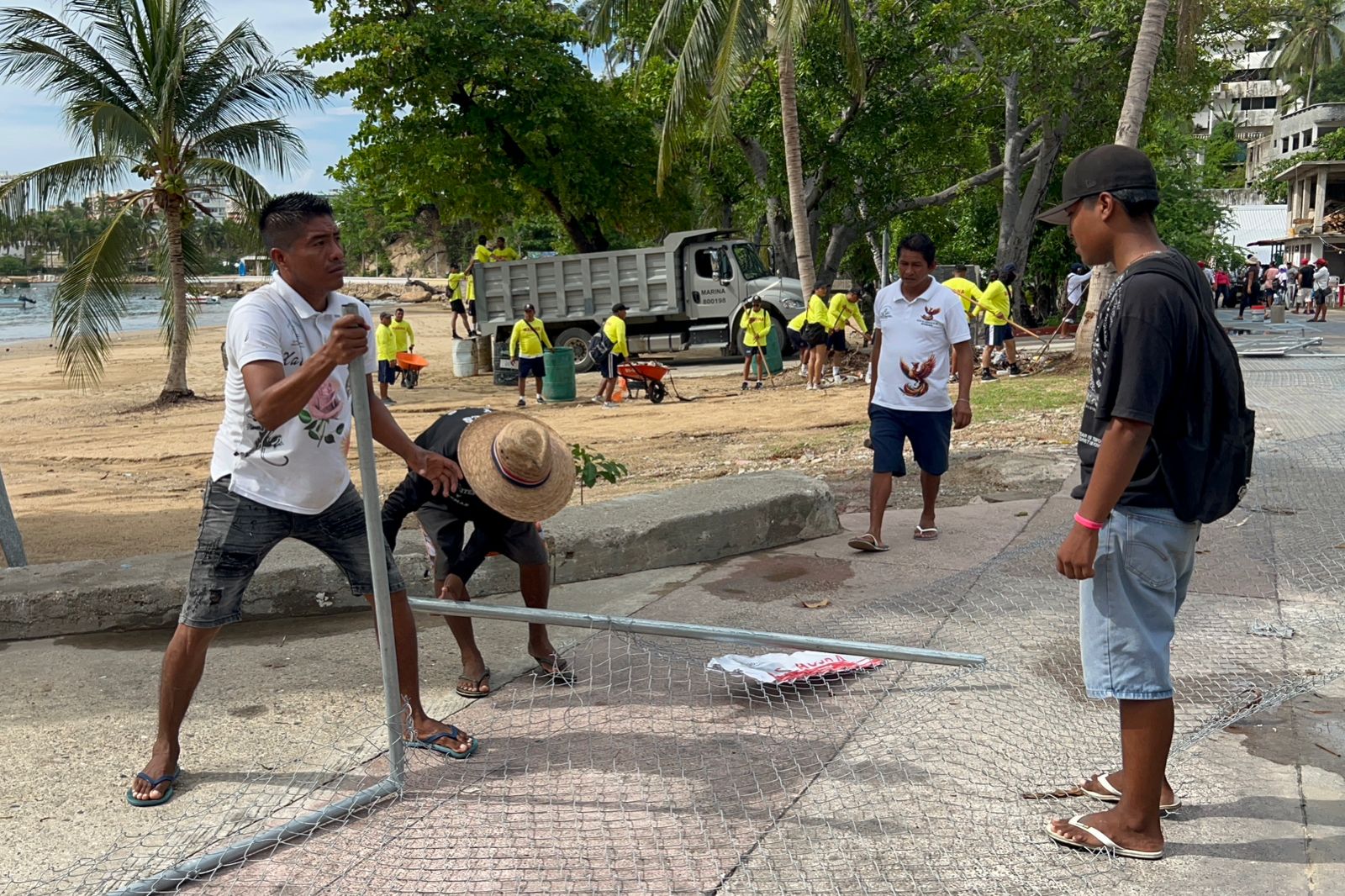 Acapulco; Gro., a 10 de junio del 2025.- Prestadores de servicios turísticos de distintas organizaciones de Acapulco se unieron para realizar el retiro de una malla ciclónica que se encontraba instalada en la zona de Playa Manzanillo, la cual dañaba el resguardo y acceso a esta emblemática zona de playa.