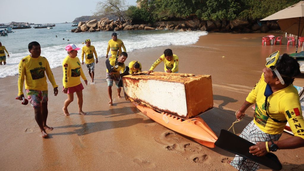 Fueron dos embarcaciones las que participaron y los buzos equipados con tanques de oxígeno, descendieron unos metros en el fondo del mar donde comenzaron a sacar a flote los desechos.
