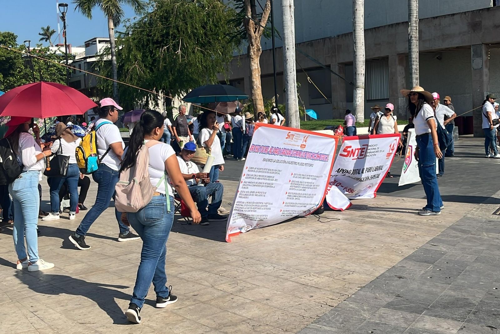 Acapulco; Gro.- En el segundo día de protestas, profesores de educación especial de Acapulco iniciaron un plantón indefinido en el zócalo de la ciudad, para exigir a las autoridades educativas el cumplimiento de 11 puntos de carácter laboral.