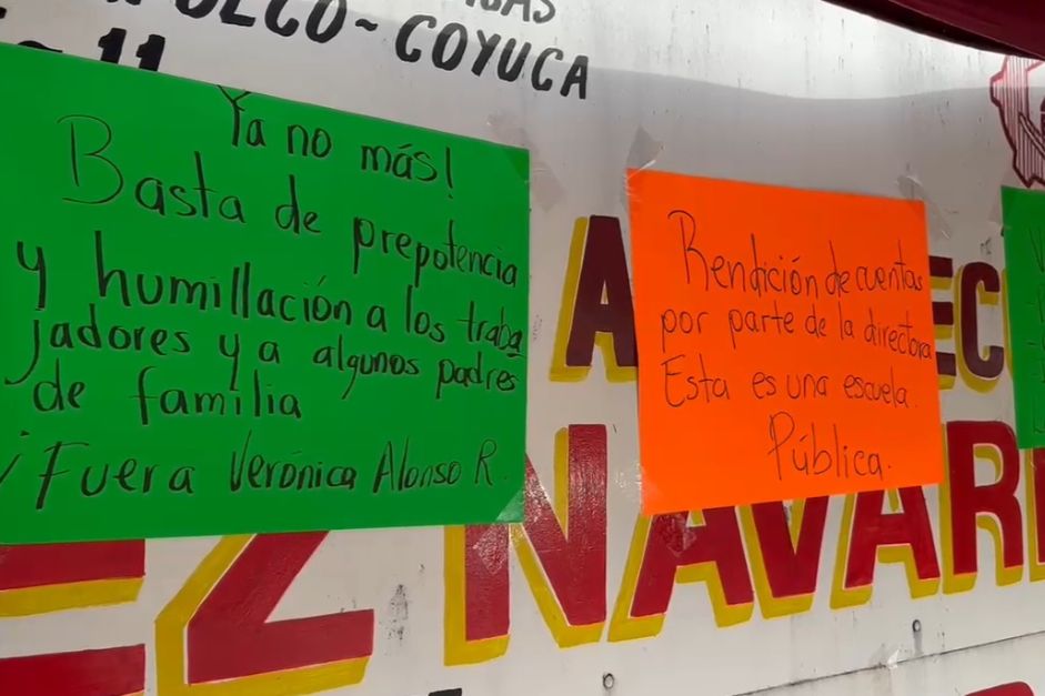 Finalmente, los profesores pegaron cartulinas en el plantel educativo para denunciar los abusos y malas acciones de la directora.
