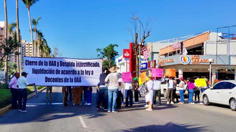 Un grupo de profesores de la Universidad Americana de Acapulco (UAA) realizaron un bloqueo sobre la avenida Costera Miguel Alemán para exigir respuesta ante el cierre de la institución educativa que tras el paso del Huracán Otis dio aviso a su personal y alumnado del cierre de la escuela.