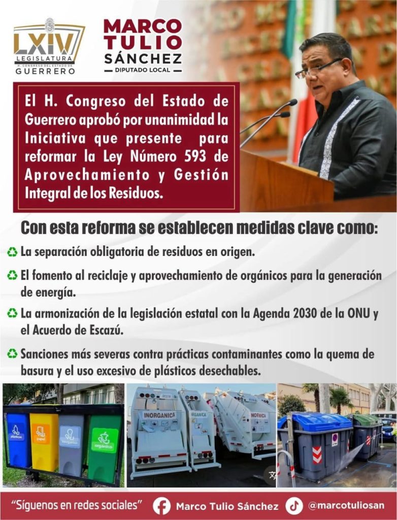 Con dicha aprobación en el Congreso de Guerrero, Marco Tulio refrenda su compromiso de impulsar leyes que transforman la realidad del estado suriano.