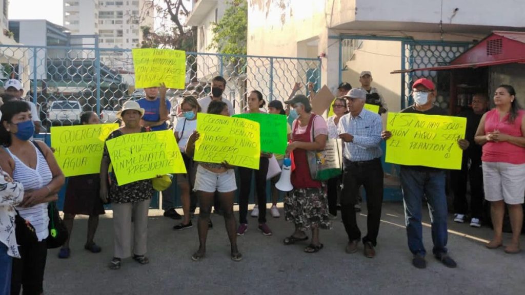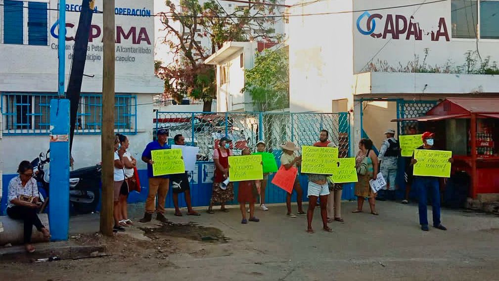 Acapulco, Gro., a 27 de noviembre de 2023.- Habitantes de la colonia Morelos protestaron a las afueras de las oficinas de la Dirección de Operación de la Comisión de Agua Potable y Alcantarillado del Municipio de Acapulco (CAPAMA) para exigir se les dote del servicio de agua potable, que desde hace poco más de dos meses no tienen en sus viviendas.
