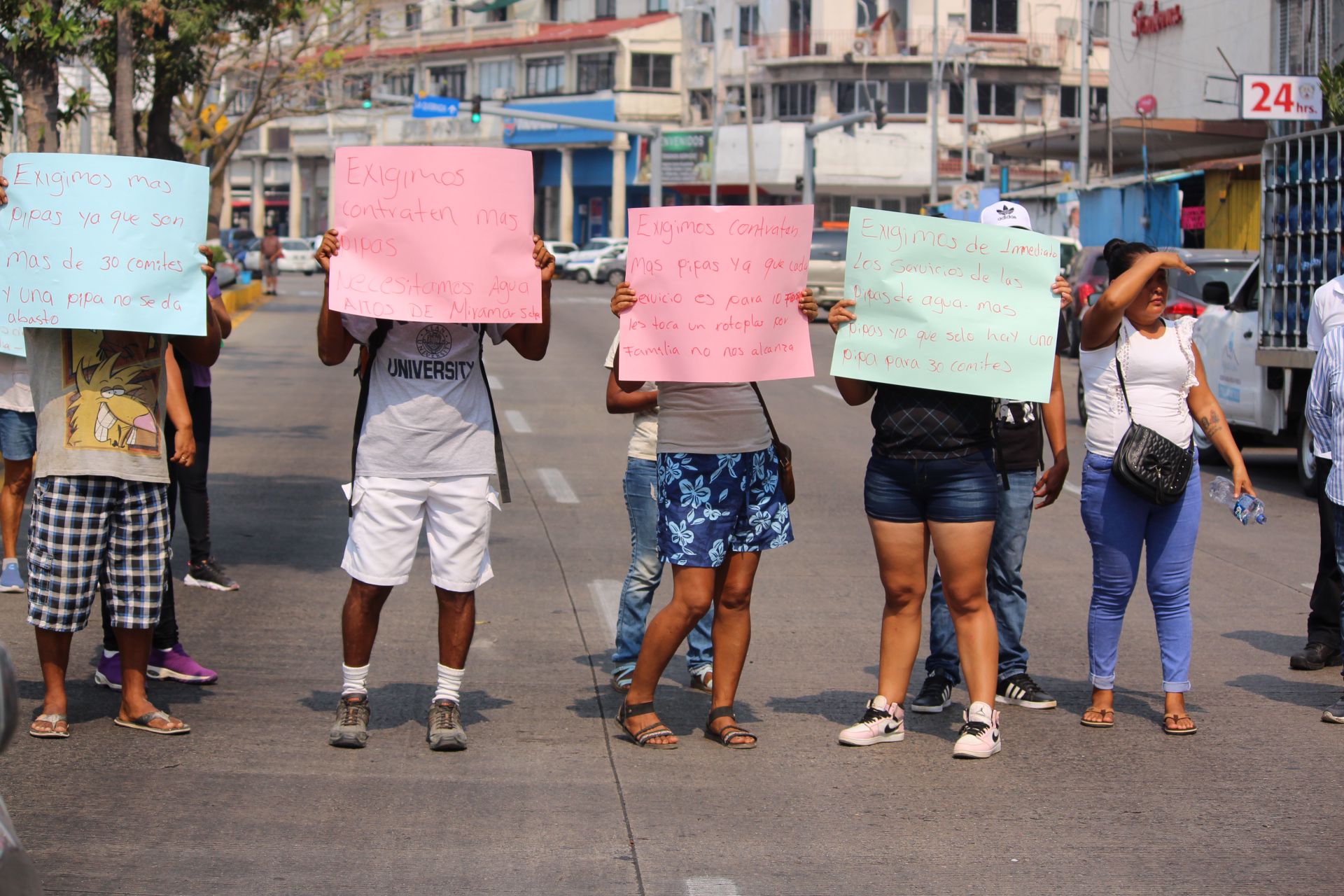 Acapulco; Gro.- Vecinos de las colonias El Porvenir, Altos de Miramar y Amalia Solórzano realizar un bloqueo para exigir se les dote del servicio de agua potable pues desde hace poco más de dos meses no tienen en sus hogares.