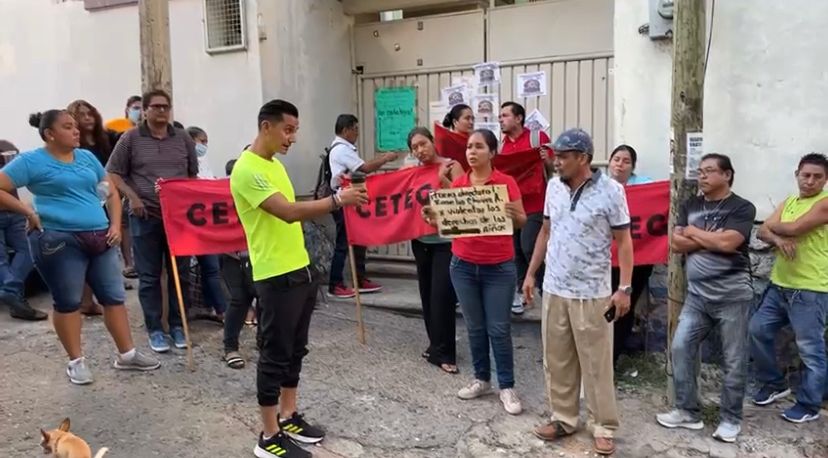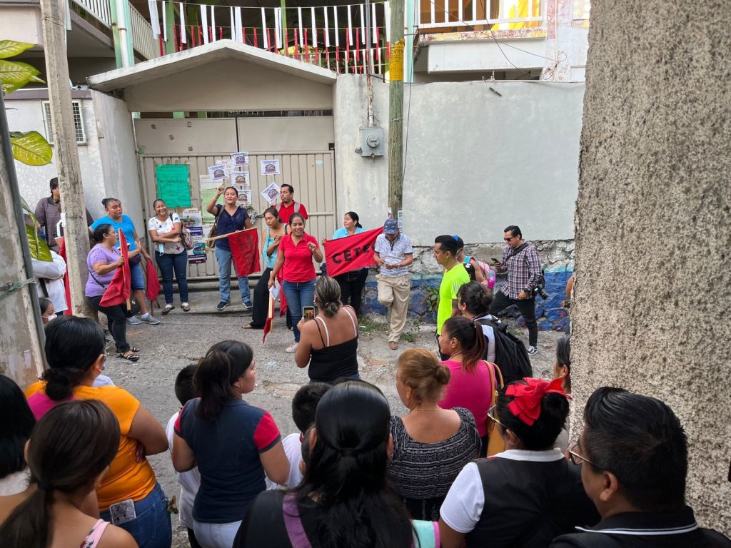 Los profesores exigen la salida inmediata de la directora del plantel Roselia Chávez Alonso a quien acusaron de ejercer violencia psicológica en contra de una trabajadora de limpieza, además de maltratar a los padres de familia que diariamente se acercan a dejar a sus hijos.