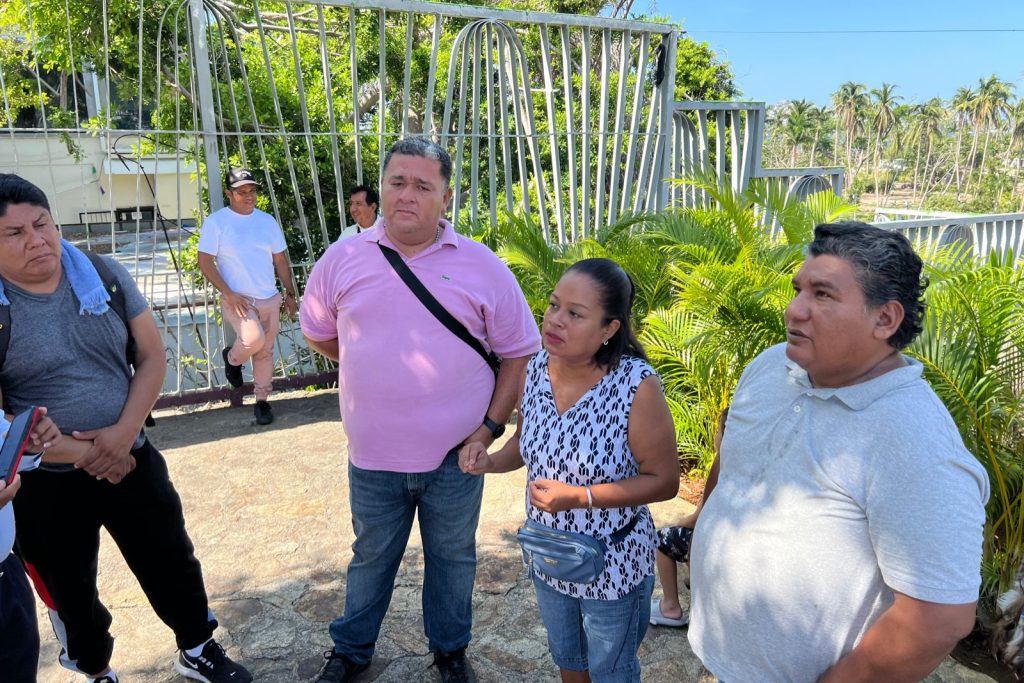 Acapulco; Gro.- Padres de familia y personal docente de la escuela primaria Real del Palmar protestaron a las afueras del ayuntamiento de Acapulco ubicado en la avenida Cuauhtémoc para exigir una reunión inmediata con la alcaldesa Abelina López Rodríguez para que agilice la tramitología de regularización de un predio y así comenzar con los trabajos de construcción.