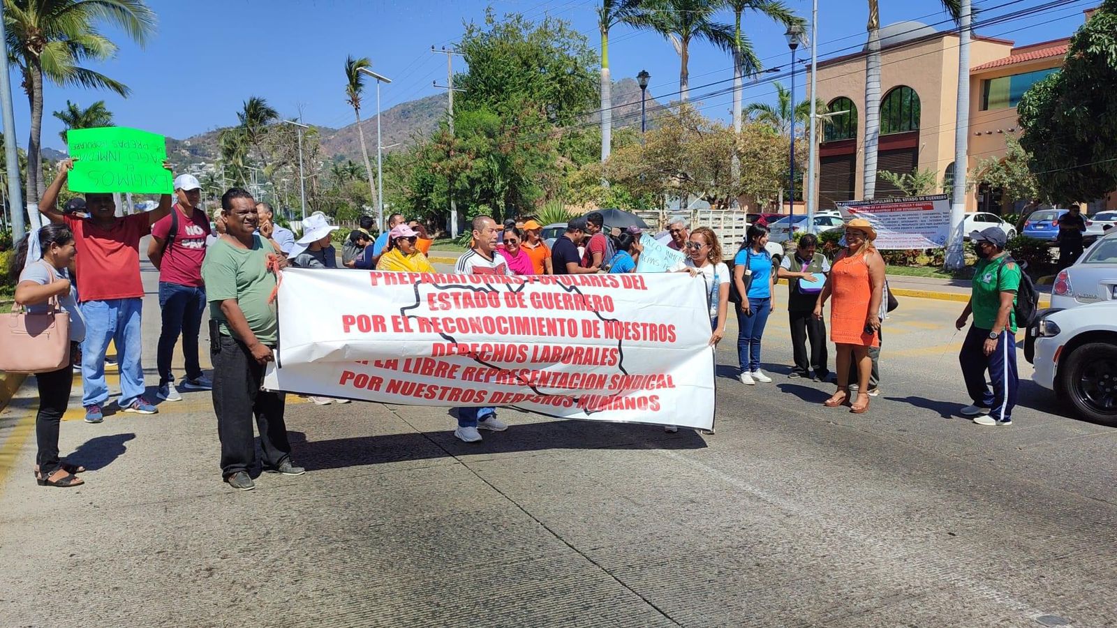 Acapulco,Gro., a 02 de marzo del 2023.-Personal docente pertenecientes de preparatorias populares del puerto de Acapulco se manifestaron durante esta mañana sobre el bulevar de las Naciones para exigir al Gobierno Estatal el pago correspondiente a tres quincenas.