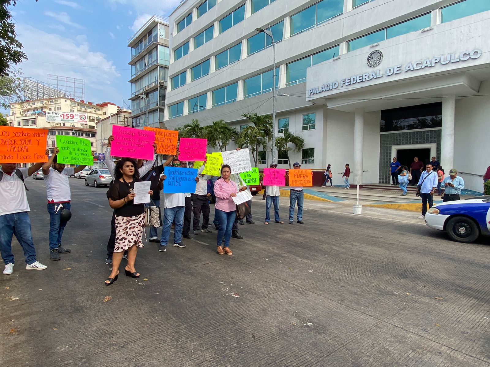 Acapulco, Gro., a 11 de abril de 2023.- Trabajadores de Servicio Postal Mexicano protestaron y bloquearon la Costera Miguel Aleman a las afueras del Palacio Federal para demandar la destitución inmediata de la coordinadora de la región del Estado de Guerrero, Guadalupe Palacios.