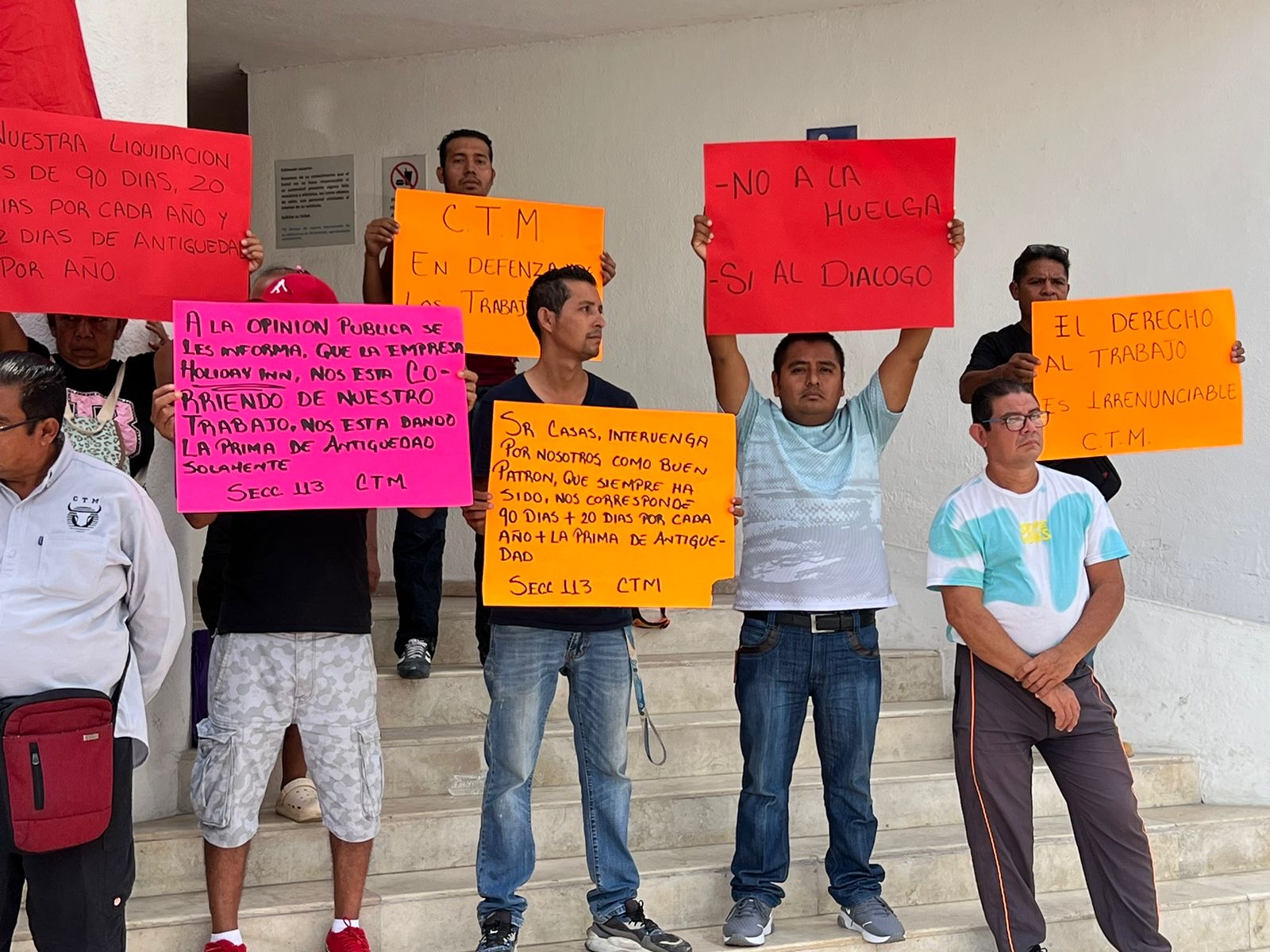 El grupo de trabajadores adheridos a la Sección 113 de la CTM informaron que esta mañana se presentaron y ya no los dejaron entrar a la hospedería, pues habían sido colocadas algunas paredes de triplay reforzado.
