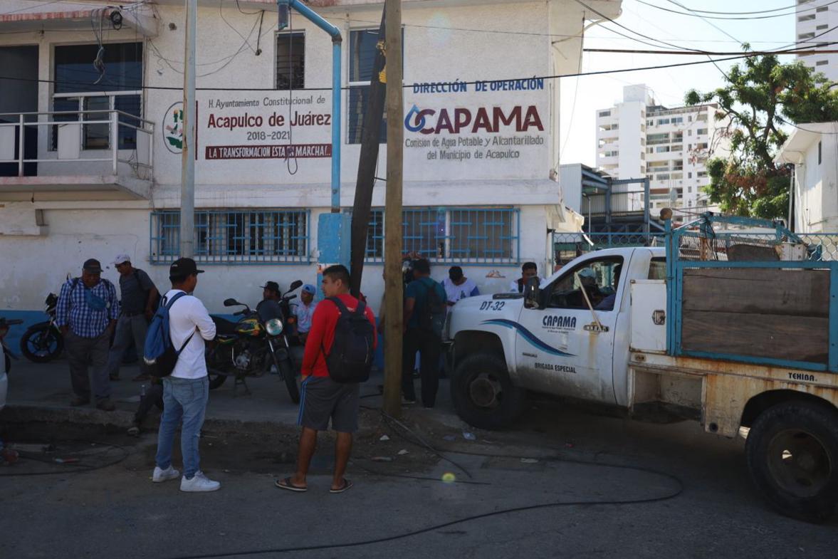 Trabajadores eventuales de la Comisión de Agua Potable y Alcantarillado del Municipio de Acapulco (CAPAMA) tomaron las instalaciones del área operativa de la paramunicipal para exigir el pago de tres quincenas que les adeudan.
