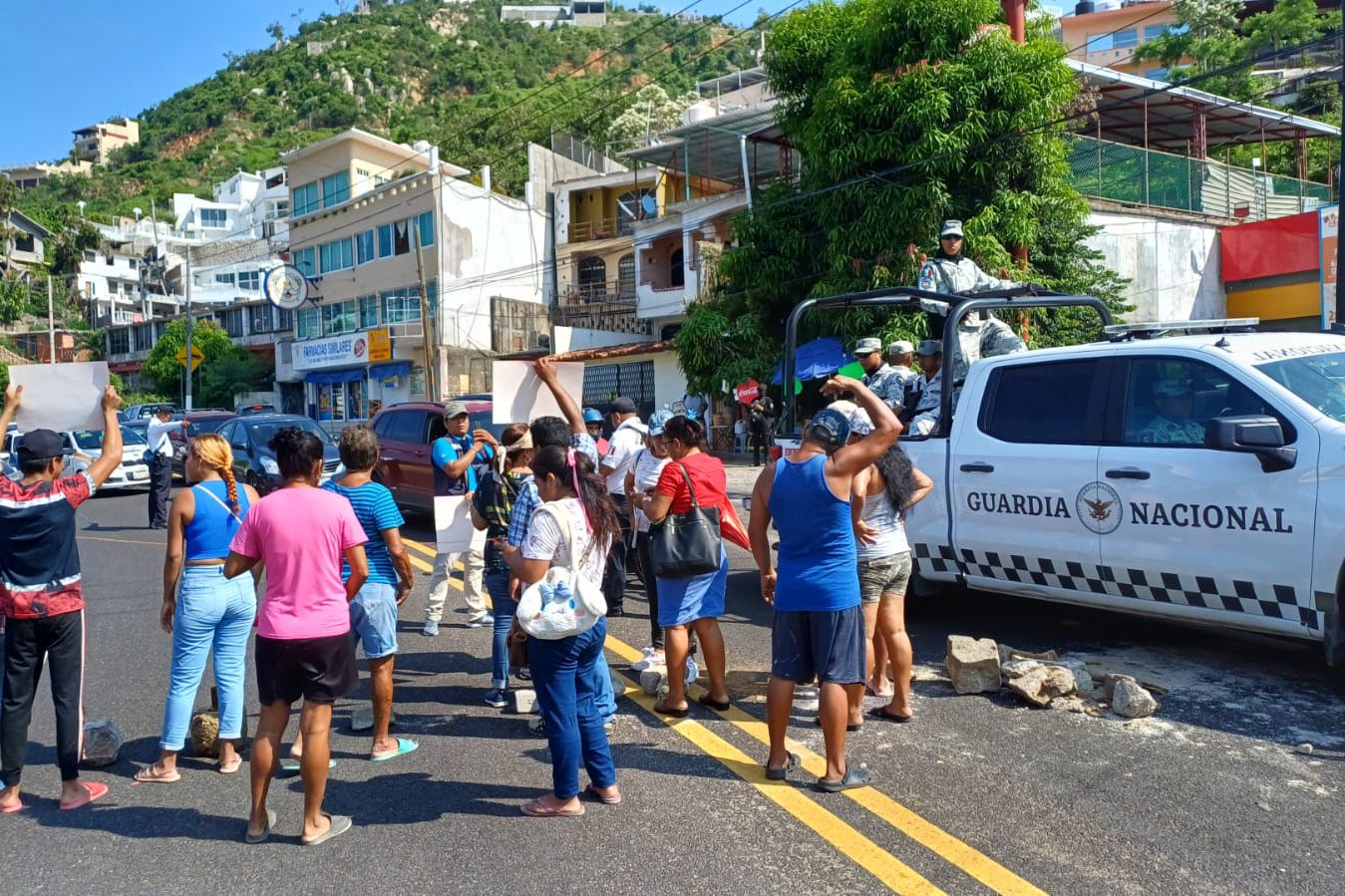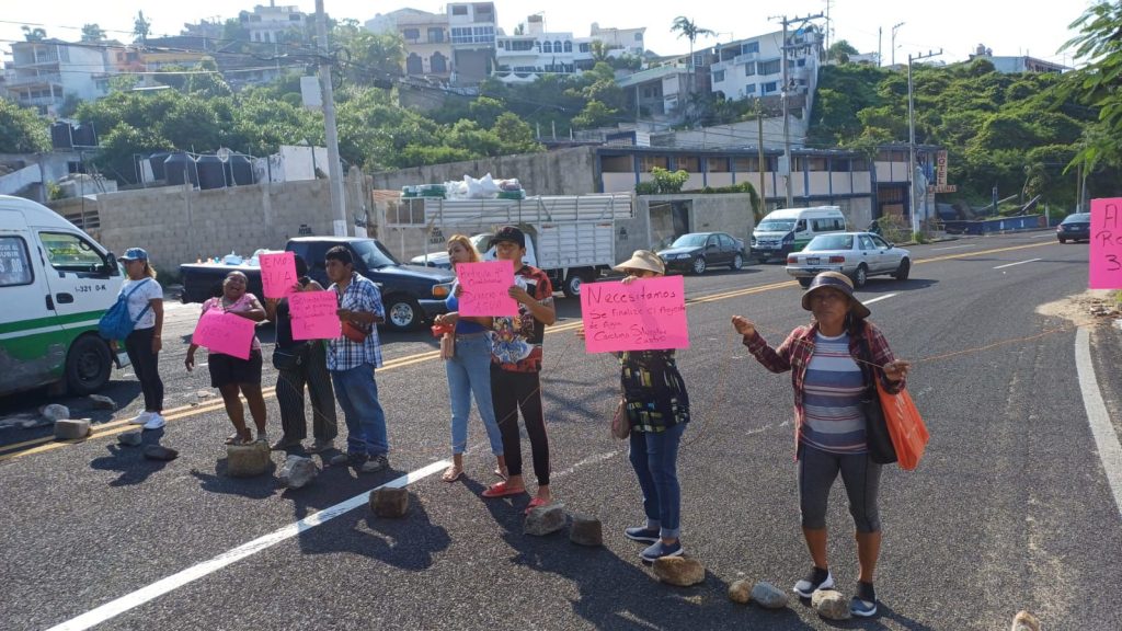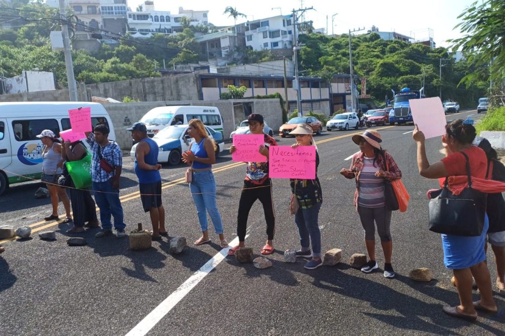 Acapulco; Gro.- La falta de agua potable a orillado a los ciudadanos a realizar bloqueos en distintos puntos de la ciudad, ejemplo de ello es el bloqueo realizado por vecinos del fraccionamiento Mozimba quienes obstruyeron la circulación de la carretera Acapulco – Zihuatanejo para exigir les doten del servicio de agua potable que desde hace tres meses no tienen en sus hogares.