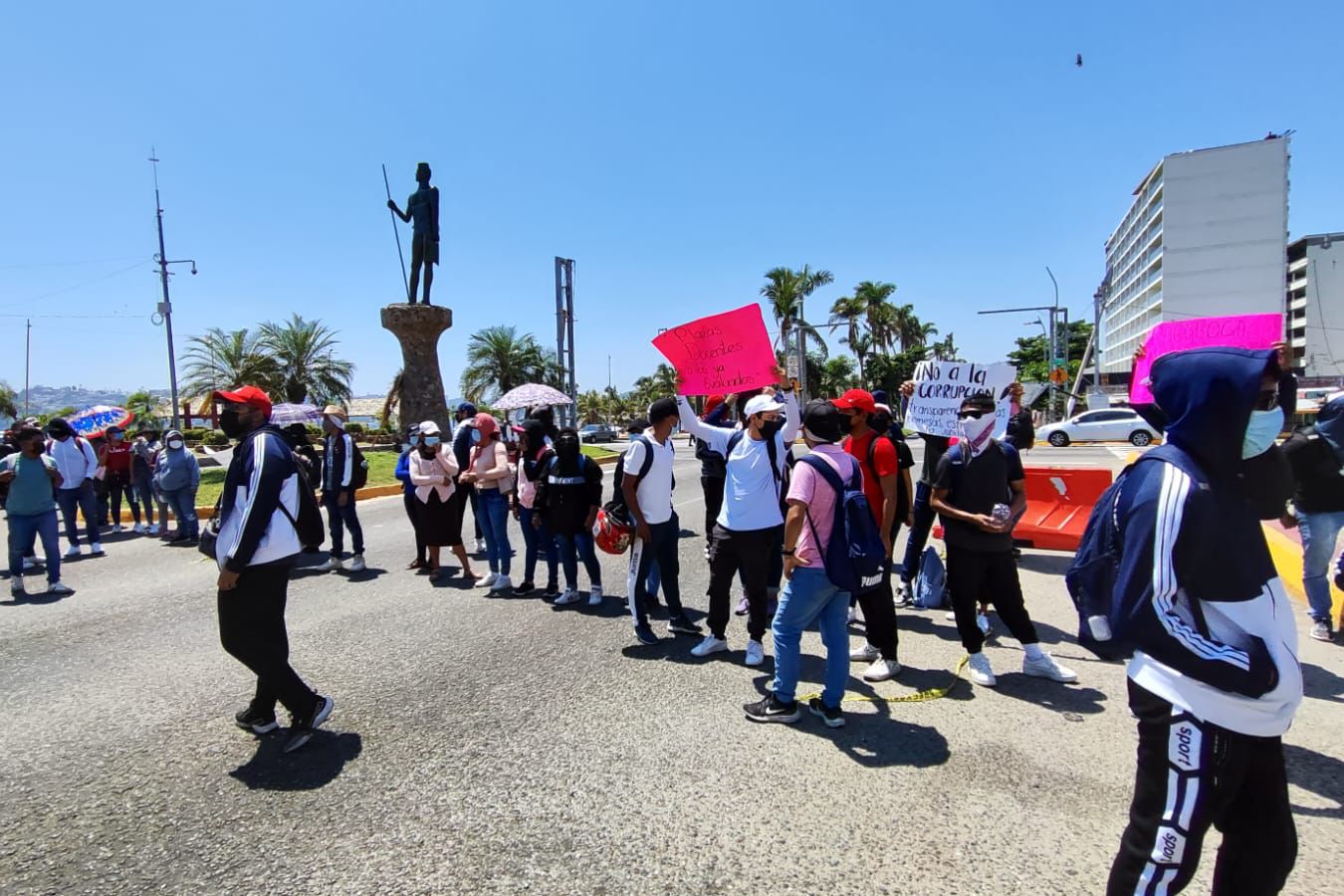 Estudiantes de distintas escuelas normales y de la Universidad Pedagógica Nacional (UPN) Acapulco, realizaron un bloqueo en ambos sentidos de la avenida Costera Miguel Alemán a la altura del edificio inteligente para dar a conocer a las autoridades distintas demandas estudiantiles.
