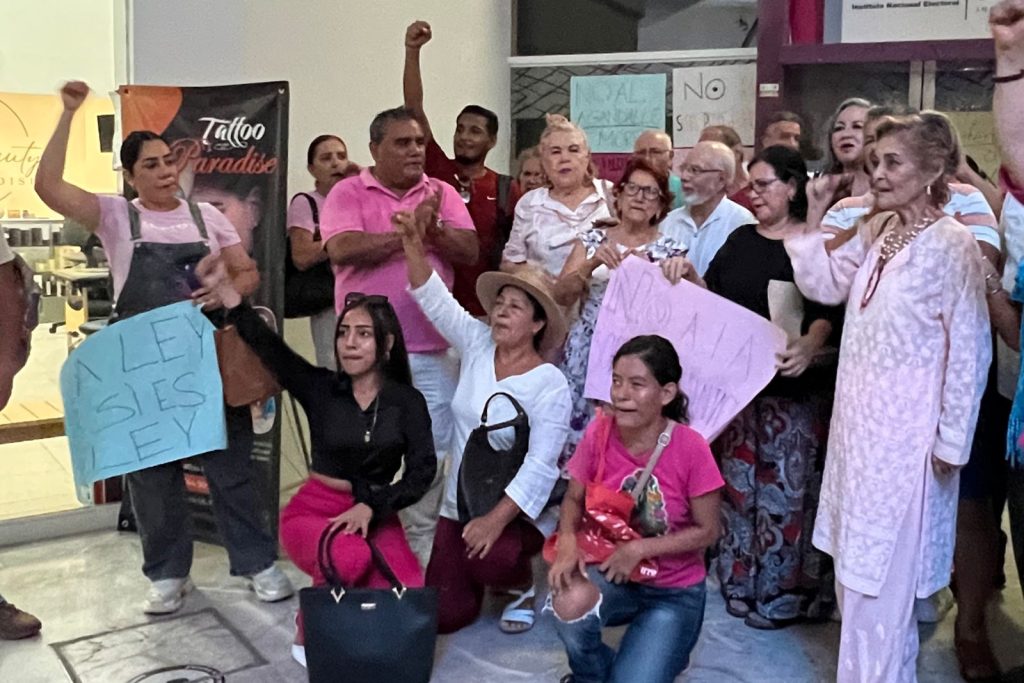 Desde las 10:00 de la mañana, el grupo de aproximadamente 30 personas comenzó a concentrarse a las afueras del centro de congresos Costera 125, lugar donde se localizan las oficinas del INE, para minutos después comenzar a protestar.