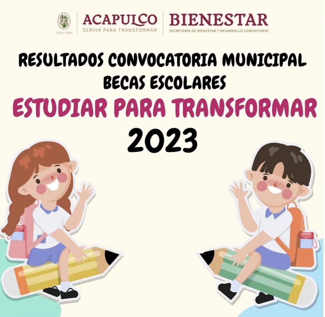 Acapulco, Gro., 27 de septiembre de 2023.- Como parte de las acciones para contribuir en la educación de las y los acapulqueños, el Gobierno Municipal que preside Abelina López Rodríguez, a través de la Secretaría de Bienestar y Desarrollo Comunitario que dirige Leticia Lozano Zavala, presenta la lista de los 2 mil 500 niños, niñas y jóvenes estudiantes que resultaron beneficiarios del programa de becas “Estudiar para Transformar”.