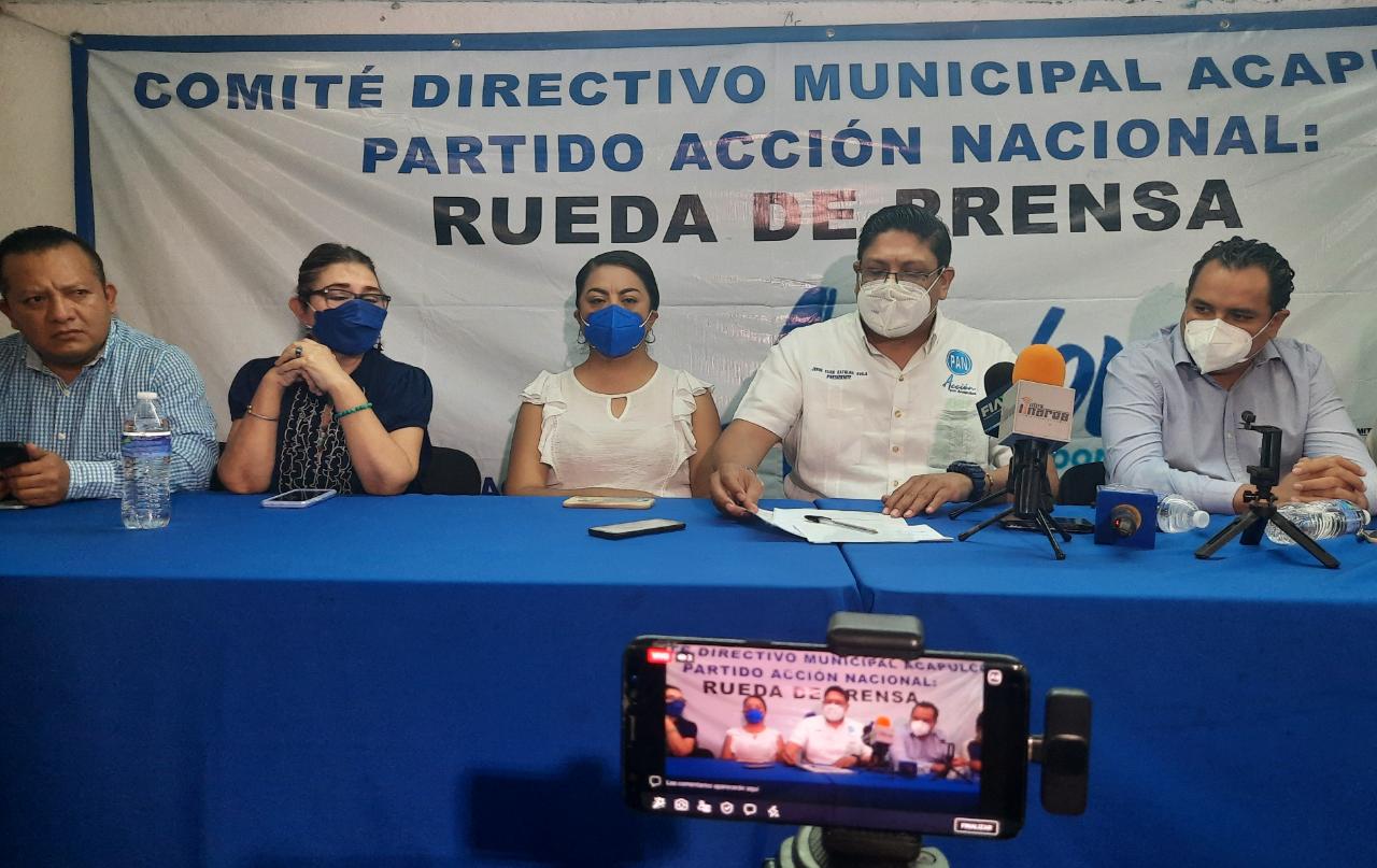 Acapulco, Gro., a 01 de marzo de 2022.- Ante los recientes hechos de violencia suscitados en Guerrero, integrantes del Comité Directivo Municipal del Partido Acción Nacional (PAN) exigieron que los gobiernos de Morena cambien totalmente la estrategia de seguridad, al señalar que las mesas de Coordinación para la Paz no dan resultados a la población.