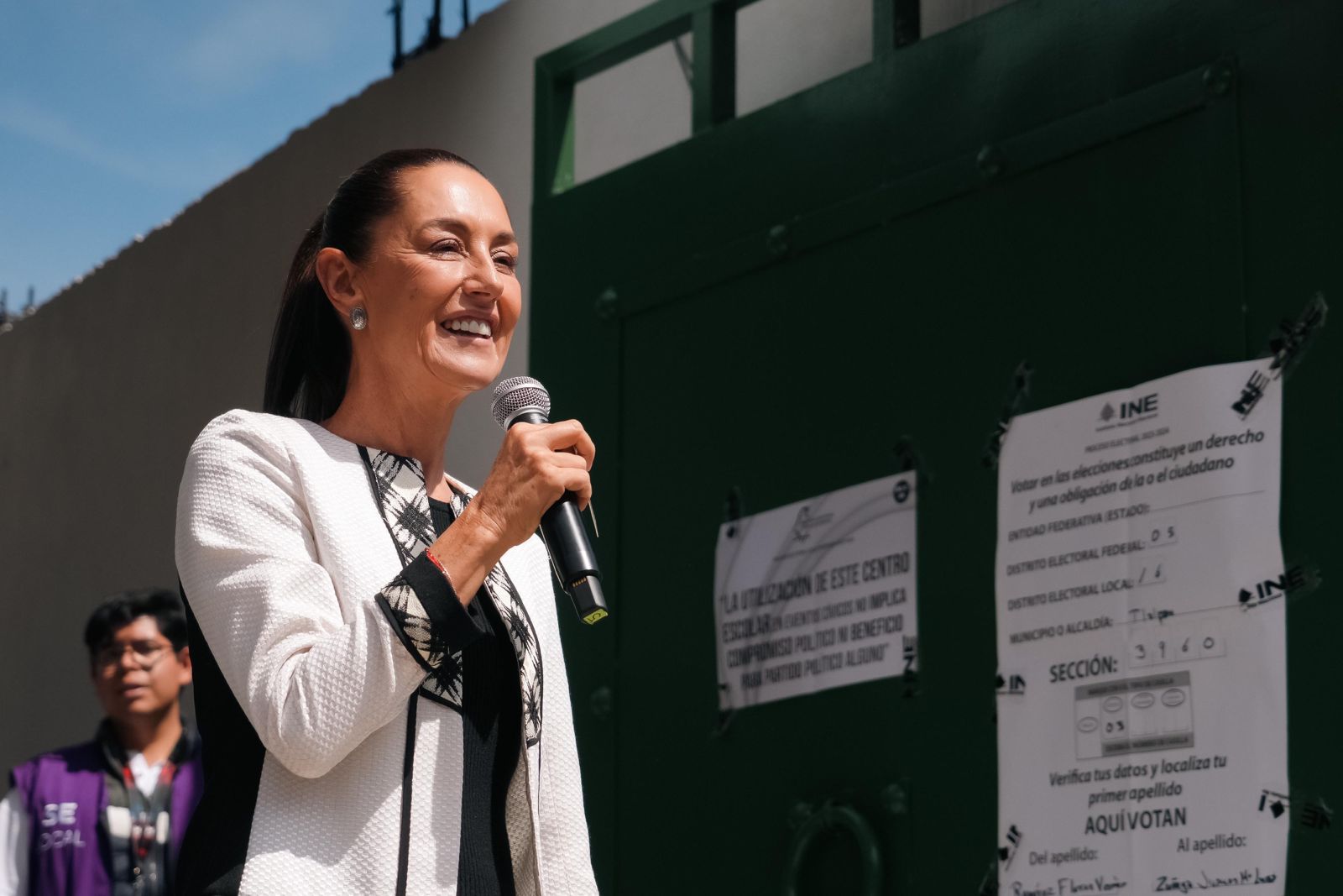 Al salir de la casilla, con mucha alegría, Claudia Sheinbaum informó su votación a favor de la continuidad de la Cuarta Transformación en todos los comicios que se disputan durante esta jornada electoral.