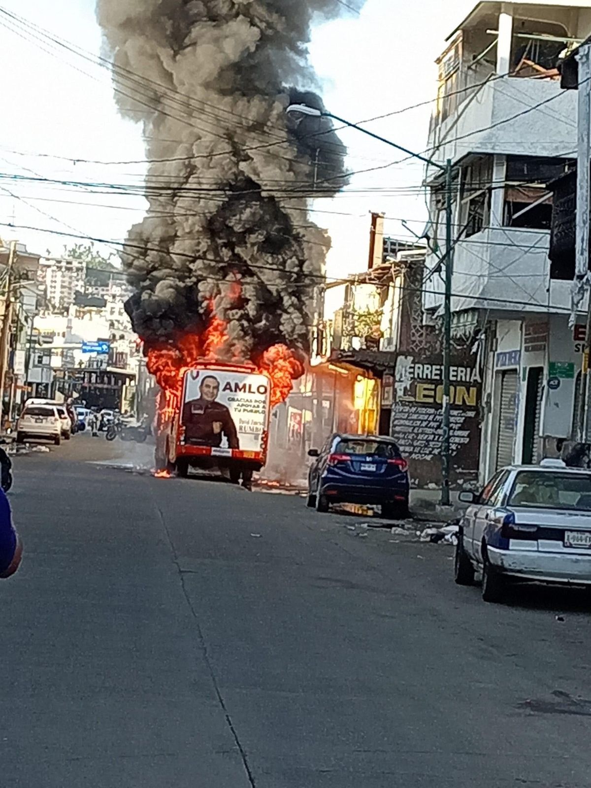 Un camión del transporte público de la ruta Hospital – Vacacional fue incendiado por sujetos desconocidos en la colonia Centro del puerto de Acapulco.