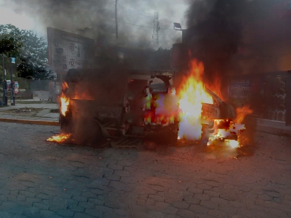 Los primeros reportes indican que varios sujetos armados hicieron descender al chofer de la unidad para en cuestión de segundos rociarla de gasolina y prenderle fuego.