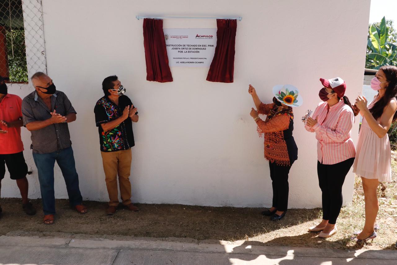 Acapulco, Gro., 08 de noviembre de 2020.- Refrendando su compromiso con la educación, la presidenta municipal Adela Román Ocampo inauguró cinco aulas y una techumbre en los poblados Cerro de Piedra y La Estación, localizadas en la zona rural del municipio, obras que representan una inversión superior a los 5 millones 250 mil pesos.