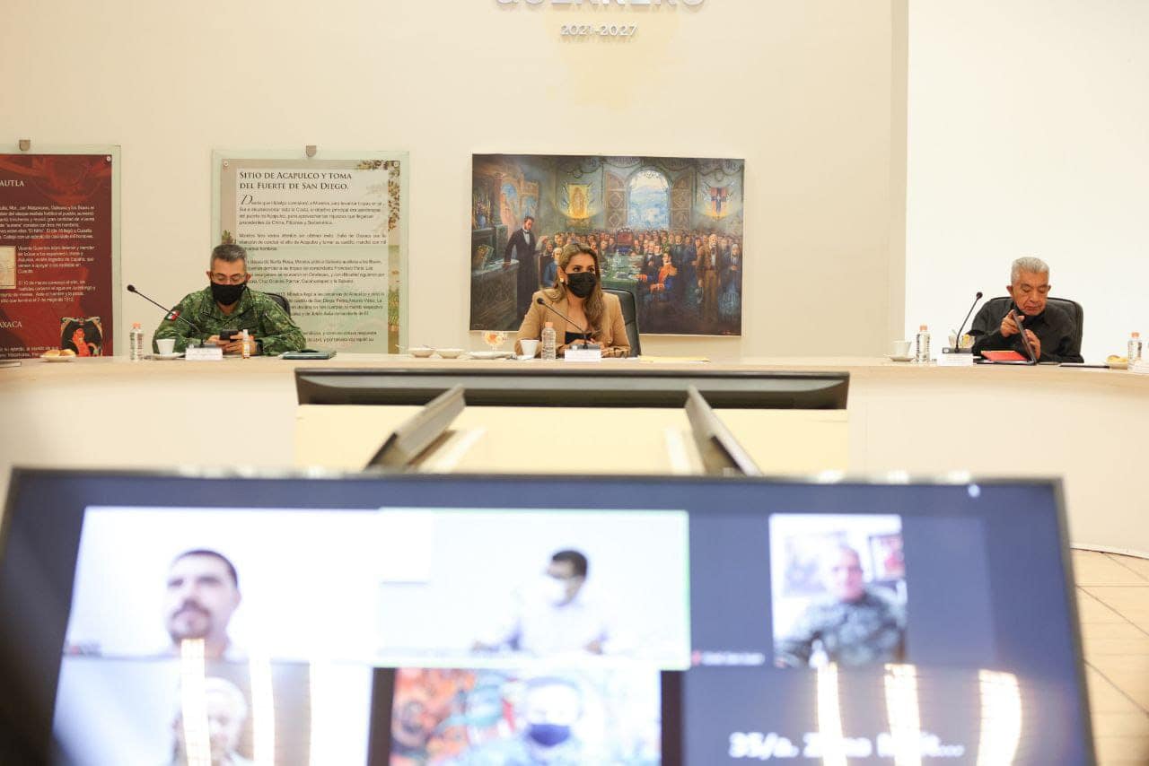 Chilpancingo, Gro., 07 de diciembre de 2021.- La gobernadora Evelyn Salgado Pineda y los integrantes de la Mesa Estatal de Coordinación para la Construcción de la Paz, revisaron los resultados de los operativos, acciones y estrategias de seguridad implementadas en las siete regiones de la entidad.