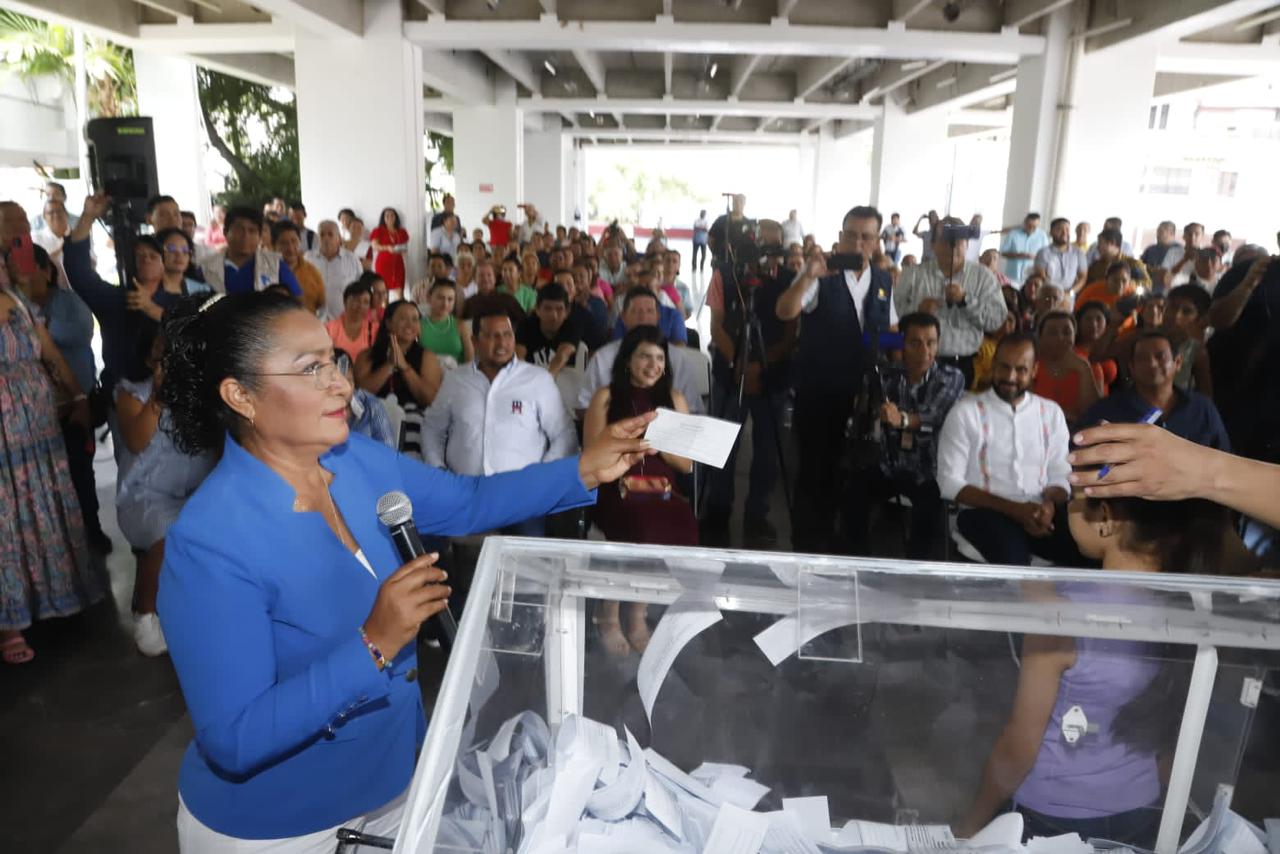 “En este sorteo agradezco a quienes nos han ayudado a sacar adelante a Acapulco, gracias a ustedes, ciudadanos y ciudadanas que pagan su impuesto predial, gracias a ustedes hemos podido hacerles frente a muchos temas ante la adversidad, quizá tenemos a veces momentos críticos, pero a través de la confianza del pueblo de Acapulco, que sabe que no le estoy robando, han aumentado los impuestos”, dijo Abelina López Rodríguez.