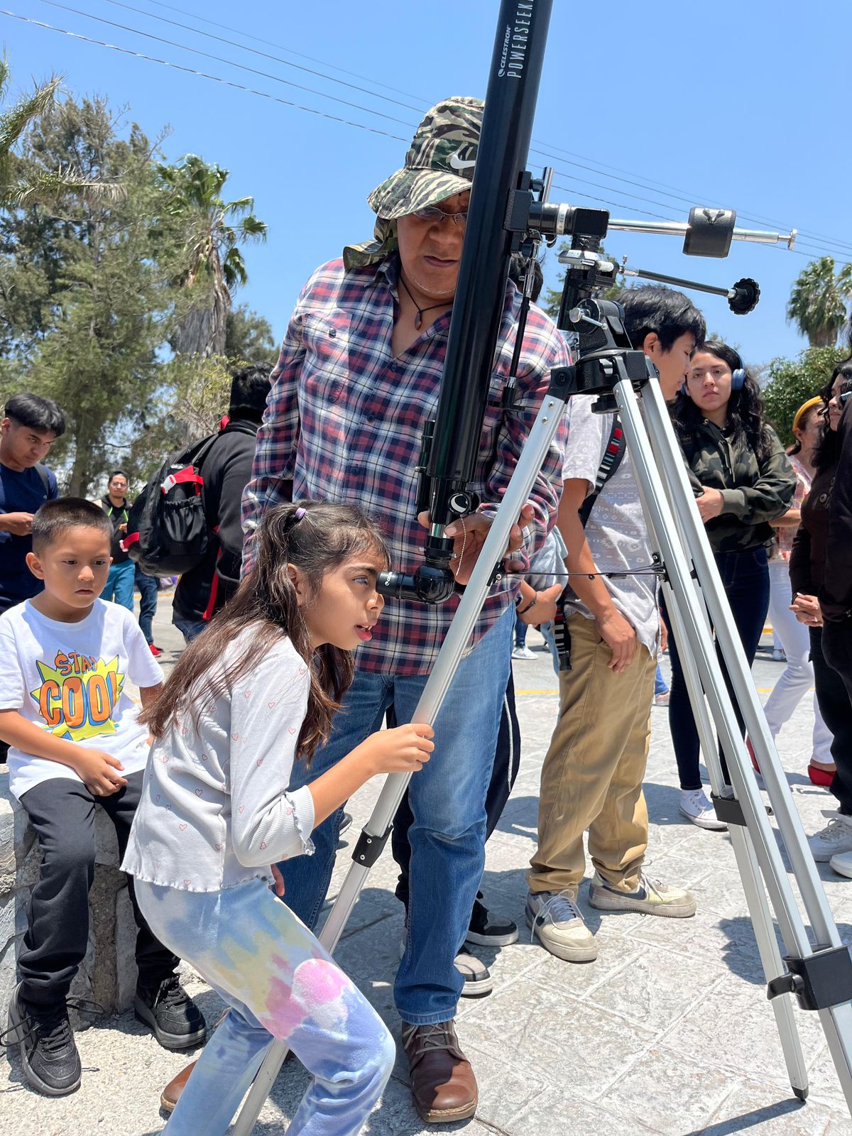Durante el evento, los asistentes observaron las diferentes etapas del eclipse a través de telescopios, cajas oscuras y lentes, así como por medio de la sombra proyectada en las hojas de los árboles.