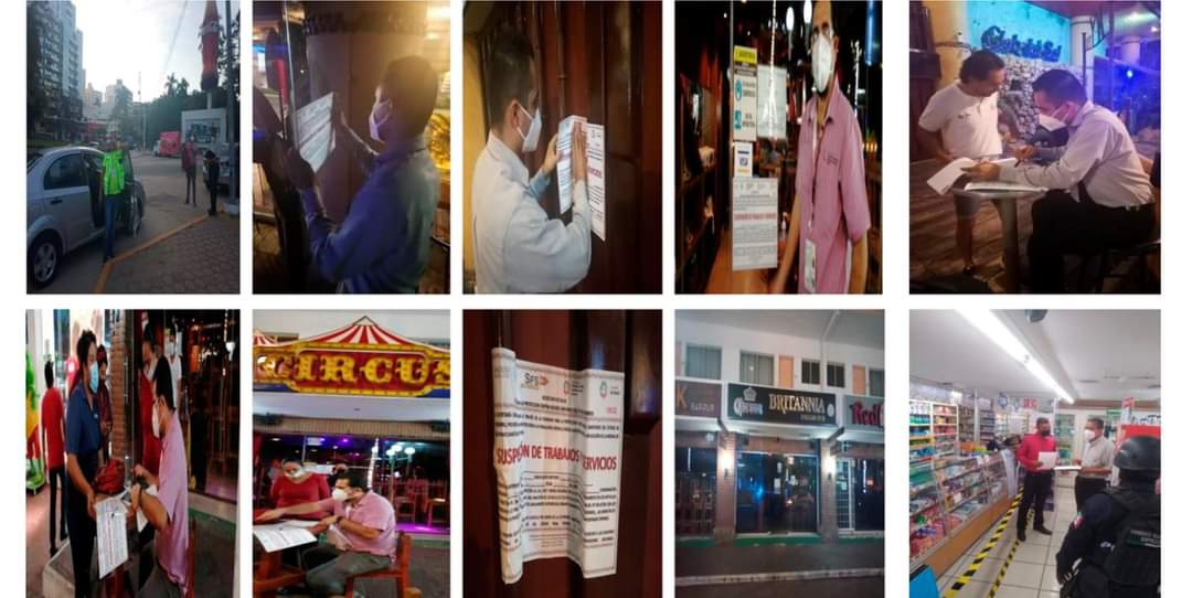 Con la participación de 24 verificadores sanitarios de la COPRISEG, en coordinación con la policía estatal, en las ciudades de Iguala, Taxco, Chilpancingo, Zihuatanejo y Acapulco, se realizaron 280 fomentos sanitarios y la entrega de 261 exhortos a diferentes establecimientos comerciales y de servicios, así como 19 notificaciones por procedimiento jurídico-administrativo, y se procedió a la suspensión de actividades en dos establecimientos en el puerto de Acapulco. De igual forma se encontraron 25 bares cerrados de acuerdo a lo que establece el decreto.