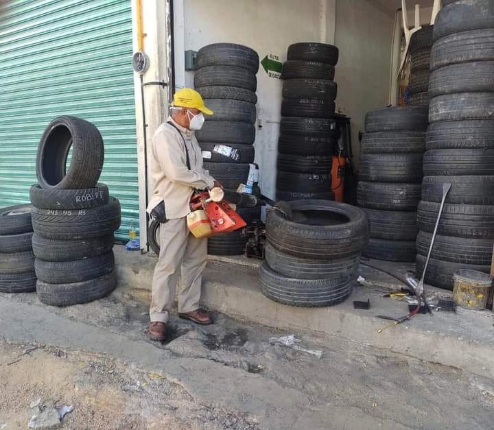Personal del área de vectores de la Dirección General de Salud Municipal, recorrió viviendas y locales de las calles Nuevo León, Ignacio Vallarta y Manuel Acuña hasta la Vía Rápida, donde entregaron abate granulado para contenedores de agua.