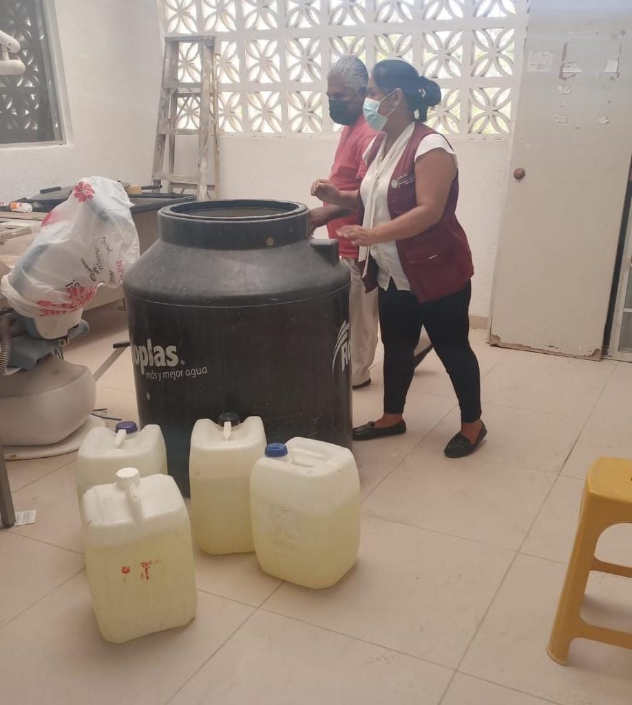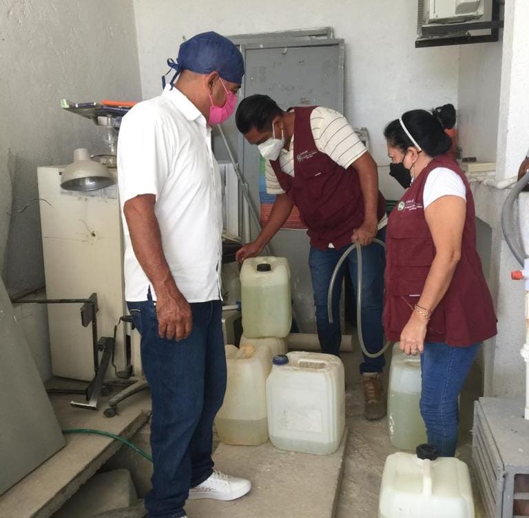 Como parte de dichas acciones se llevó a cabo la revisión de los contenedores y recolectores de agua potable, también se realizó el muestreo y determinación de cloro residual libre en el sistema formal de distribución de agua potable en relación a la NORMA OFICIAL MEXICANA NOM-179-SSA1-1998 VIGILANCIA y EVALUACIÓN DE CALIDAD DEL AGUA PARA USO Y CONSUMO HUMANO, DISTRIBUIDA POR SISTEMAS DE ABASTECIMIENTO PÚBLICO.