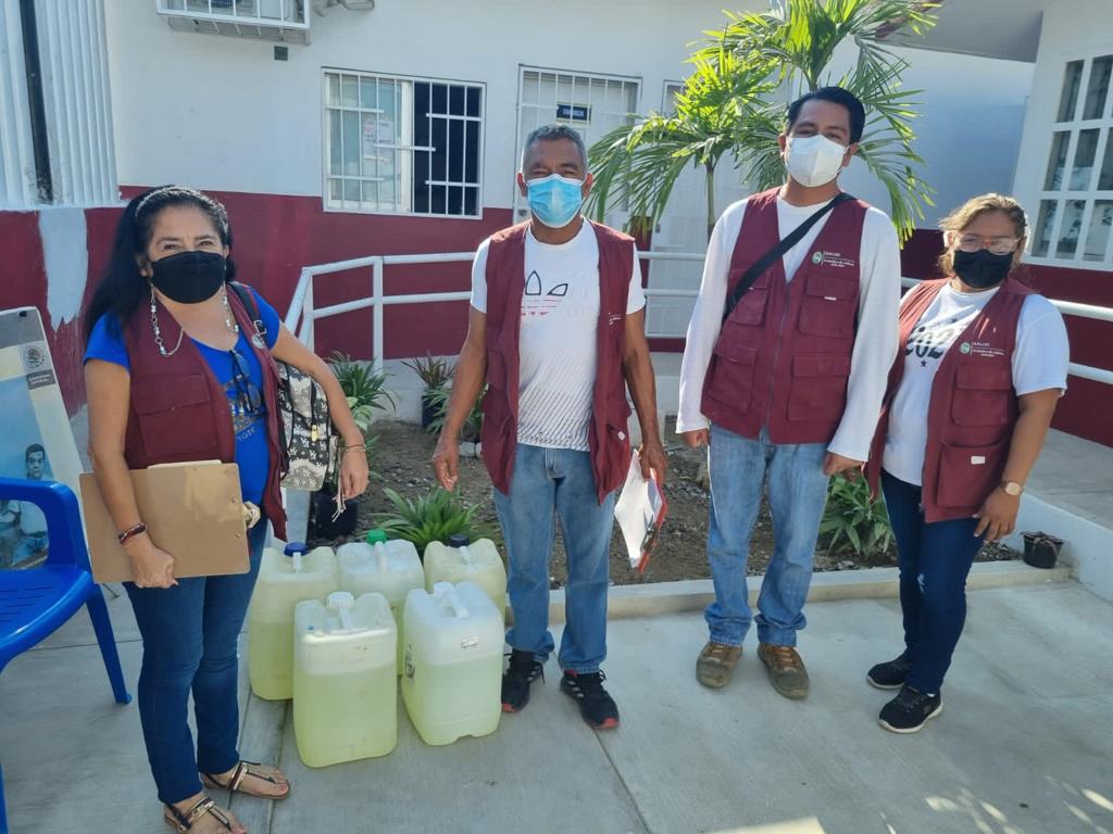 Se realizó la distribución en los centros de salud de Mártires de Cuilapa, Guadalupe Victoria, El Quemado, Unidos por Guerrero e Izazaga; en cada uno se entregaron 100 litros del insumo, lo que da un total de 500 litros, beneficiando a 430 familias que se atienden en estos núcleos.