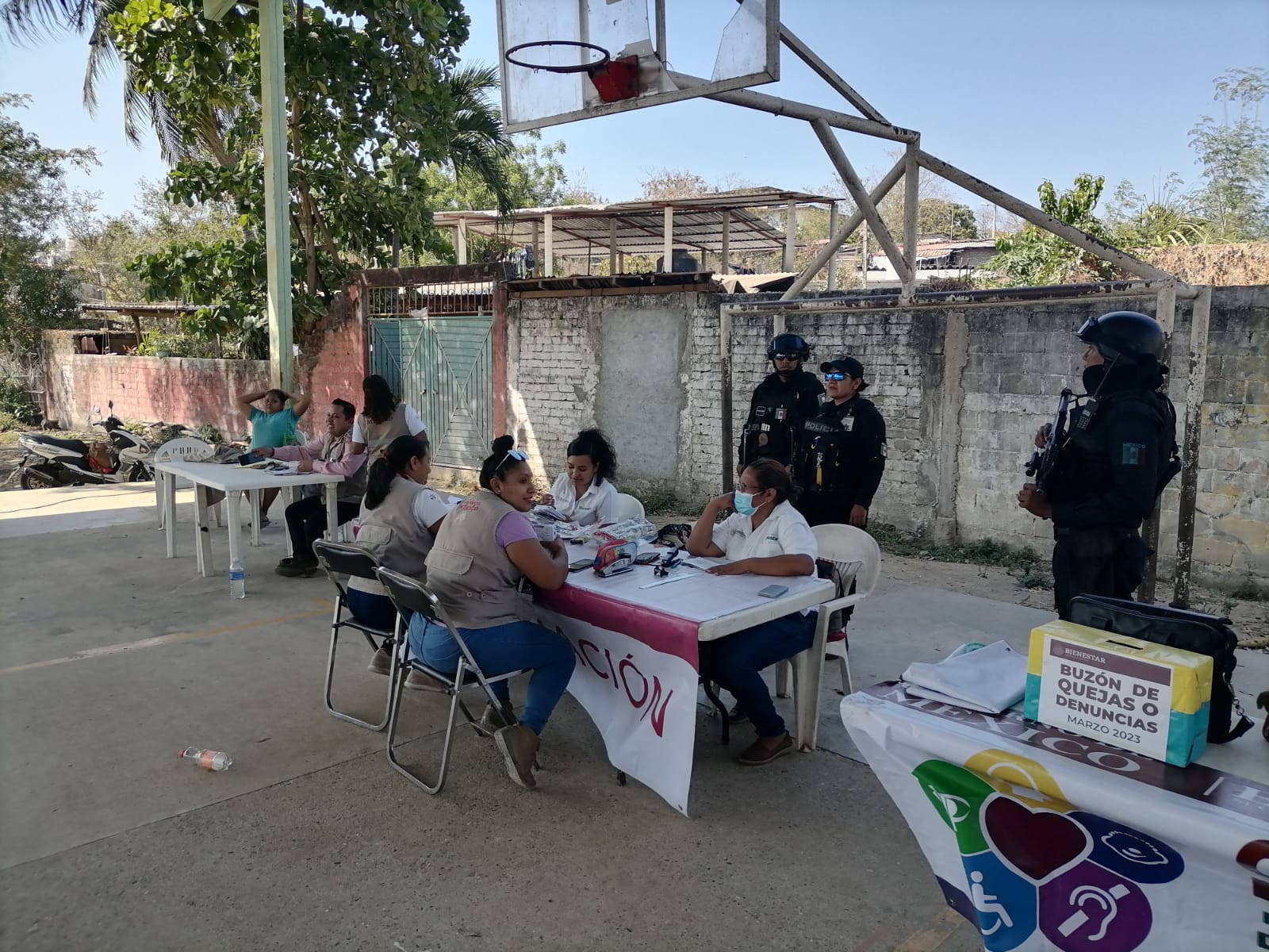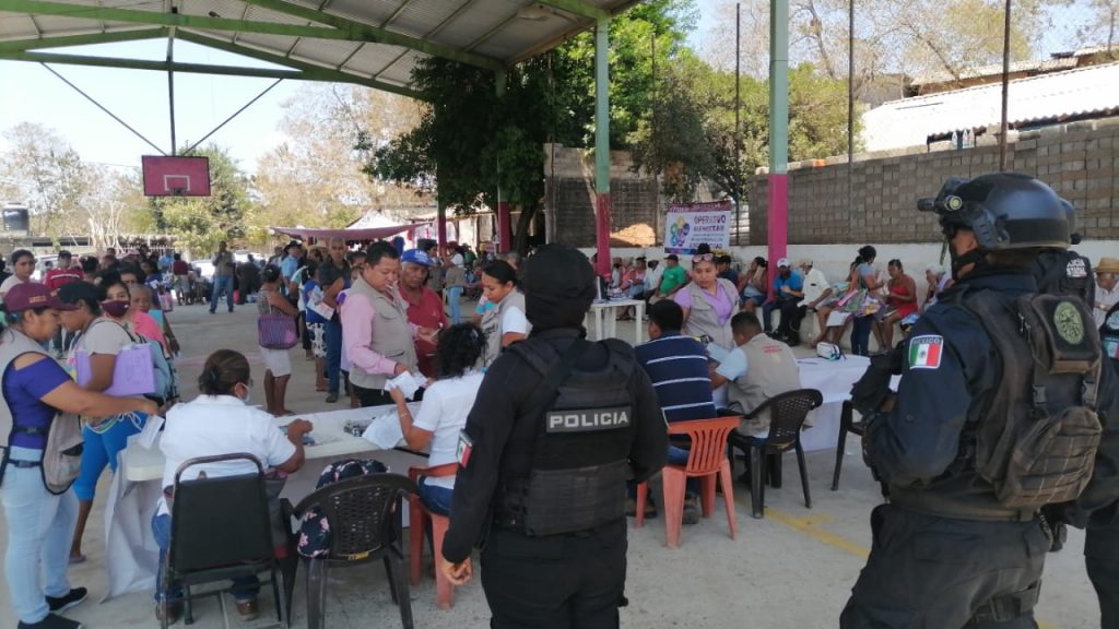 Dijo que como parte del trabajo coordinado que se realiza entre los tres órdenes de gobierno, la Secretaría de Seguridad Pública participa y apoya en los programas federales que se brindan a las y los ciudadanos, como la Pensión para el Bienestar de las Personas con Discapacidad y el de Bienestar de Niñas y Niños e Hijos de Madres Trabajadoras, donde los elementos policiacos hacen acompañamiento a los trabajadores federales hasta los poblados para entregar el beneficio a las personas.