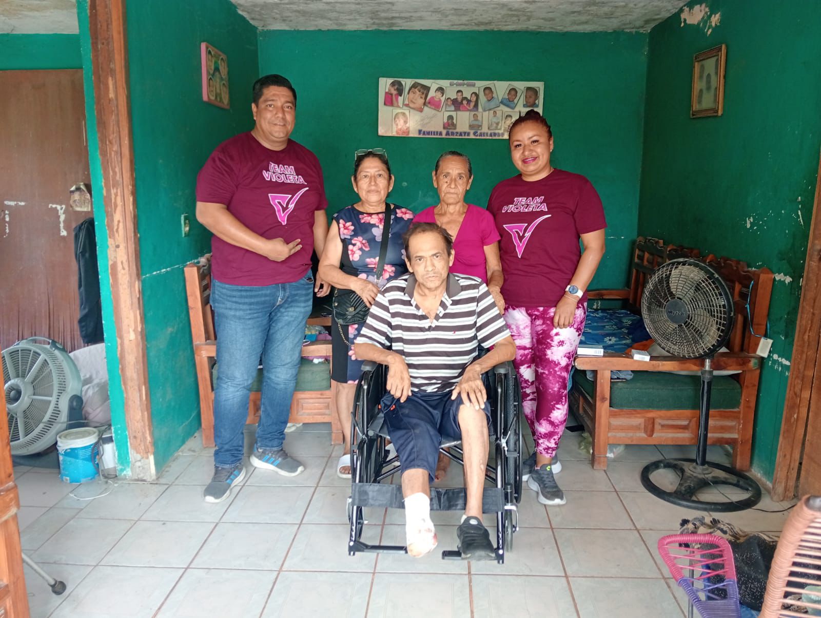 Durante la tarde, durante el recorrido en el distrito seis se entregaron cinco sillas de ruedas, cinco bastones y un par de Muletas