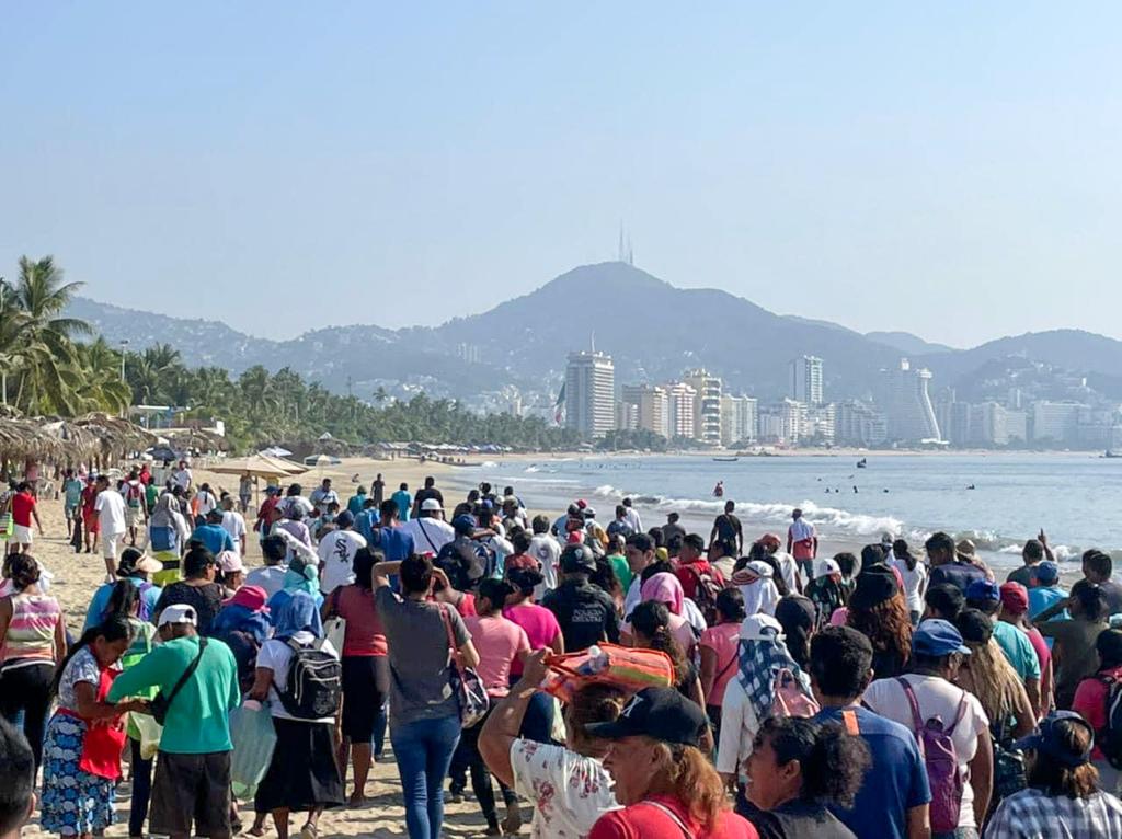 Los cientos de prestadores de servicios turísticos comenzaron desde las 9 de la mañana en la zona de playa de Tamarindos y avanzaron hasta la zona de playa Papagayo con el apoyo de personal operativo de la Promotora de Playas Acapulco.