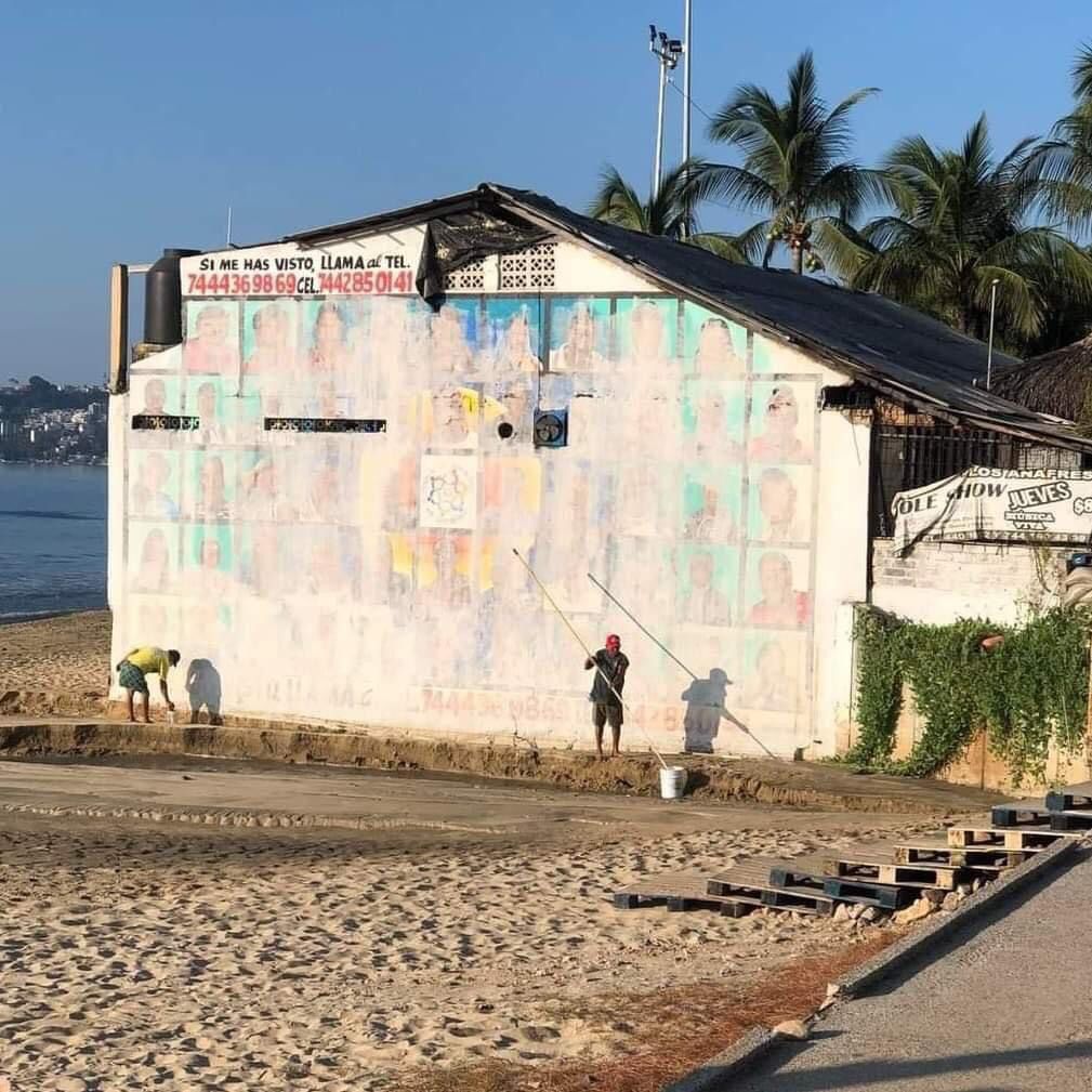En entrevista telefónica con la secretaria de acuerdos de Familias de Acapulco en Busca de sus Desaparecidos, Eva Janet Galeana Campos, señaló que “gracias a la lluvia se había despintado la pintura con la que quisieron cubrir el mural”.