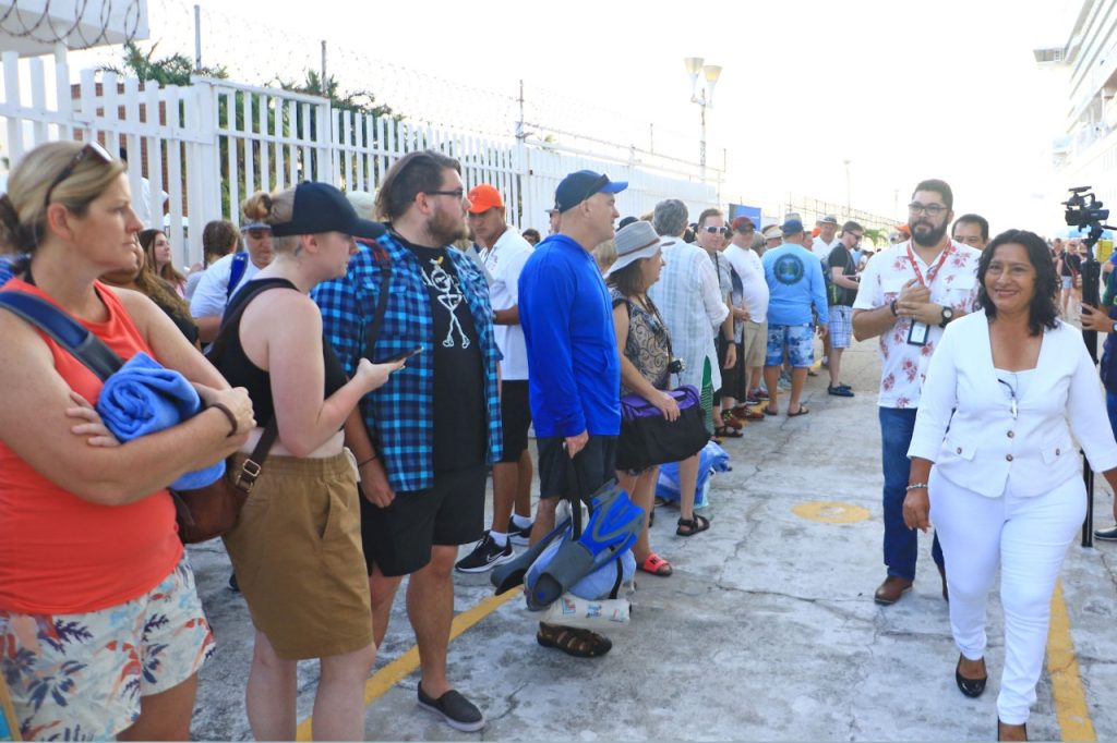 En declaraciones a reporteros, luego de saludar y dar la bienvenida a los viajeros, la alcaldesa reiteró que sigue trabajando para reactivar aún más este sector. Dijo que se esperan dos cruceros más para esta semana, resultado de las gestiones conjuntas que realiza su gobierno.