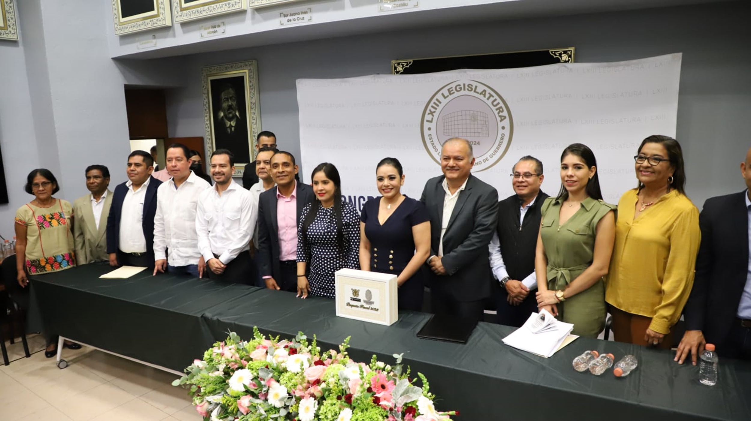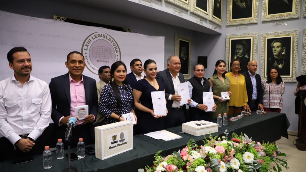 Atestiguaron el acto protocolario la presidenta de la Junta de Coordinación Política, diputada Yoloczin Lizbeth Domínguez Serna; las y los diputados presidentes de las Comisiones de Presupuesto y Cuenta Pública, de Hacienda y de Estudios Constitucionales y Jurídicos, Estrella de la Paz Bernal, Bernardo Ortega Jiménez y Leticia Castro Ortiz, respectivamente; junto a sus homólogos Ociel Hugar García Trujillo, Osbaldo Ríos Manrique, María Flores Maldonado y Beatriz Mojica Morga, y por parte del Ejecutivo el secretario de Planeación y Desarrollo Regional, René Vargas Pineda; el secretario técnico de la Oficina de la Gobernadora, Pablo André Gordillo Oliveros, entre otros funcionarios.