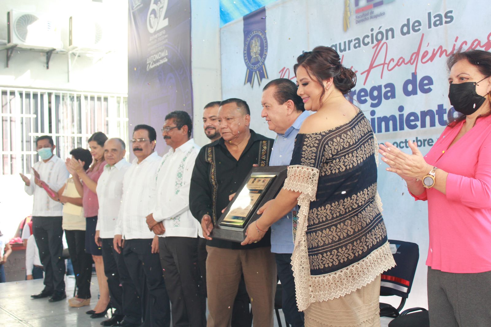 Acapulco, Gro., a 24 de octubre de 2022.- En el marco de inicio de las actividades académicas y entrega de reconocimientos en la Facultad de Derecho a 42 años de su creación de lo que ahora es la Universidad Autónoma del estado de Guerrero (UAGro), con autoridades municipales, estatales y de rectoría invitados