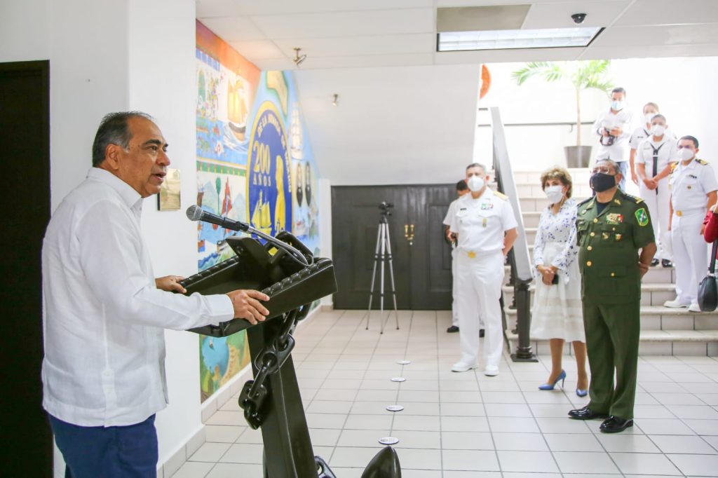Héctor Astudillo, acompañado puntualizó que el 4 de octubre de 1821 fue creada la Armada de México, originalmente como Ministerio de Guerra y Marina, por lo que celebró la creación de esta institución que durante un bicentenario ha defendido el suelo mexicano lealmente.