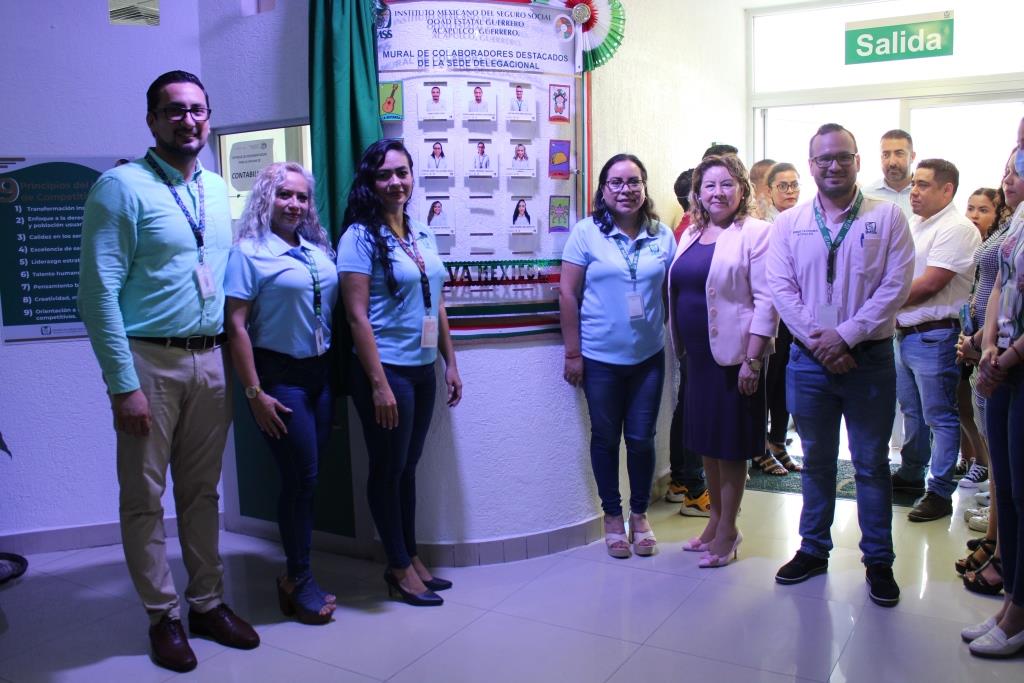 Acapulco, Guerrero 18 de septiembre de 2023.- Como parte de las acciones de implementación del Modelo Institucional de la Competitividad, el Instituto Mexicano del Seguro Social (IMSS) en Guerrero develó el “Mural de Colaboradores Destacados de la Sede Delegacional”, con el reconocimiento al personal de la Jefatura de Salud en el Trabajo, Prestaciones Económicas y Sociales.