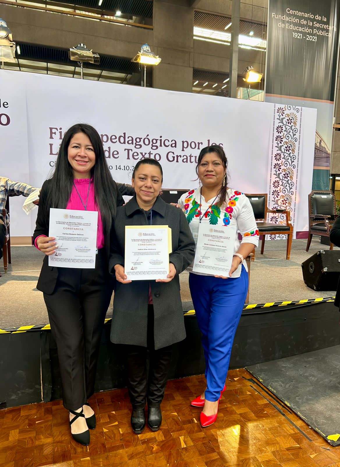 Chilpancingo, Gro., 28 de octubre de 2024.- Maestras guerrerenses fueron reconocidas por la Secretaría de Educación Pública (SEP), en la Feria Pedagógica de los Libros de Texto Gratuitos en la Ciudad de México, por su participación en la creación, revisión e innovación de tres libros de texto gratuitos de inglés para primaria y secundaria.