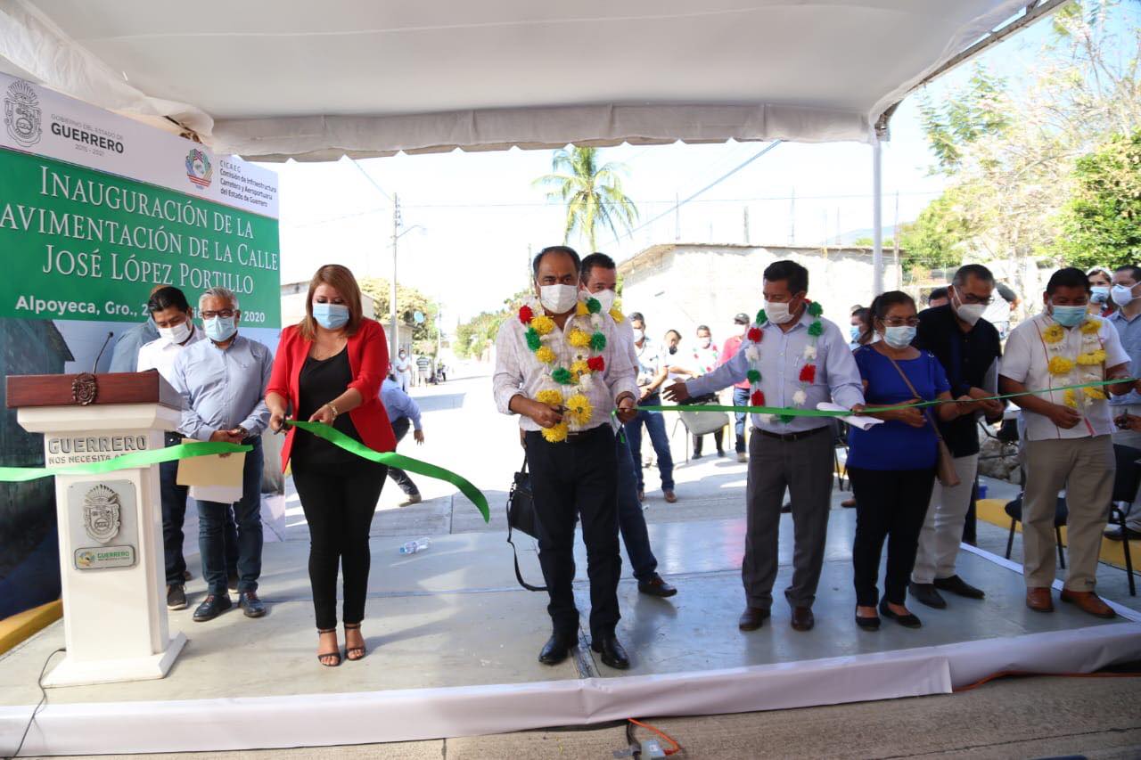 Más tarde, en su vista a Alpoyeca, acompañado de la presidenta municipal, Guadalupe Luna Ayala y de la delegada de la Colonia San Marcos, Josefina Ayala Trujillo, el gobernador inauguró la pavimentación con concreto hidráulico de 750 metros de la calle José López Portillo con una inversión de 4.8 millones de pesos beneficiando a 6 mil habitantes.
