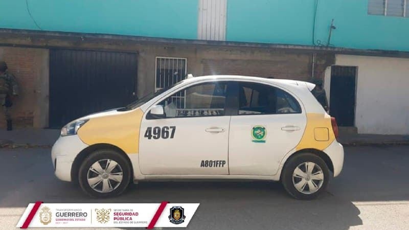 Donde recuperaron un vehículo del transporte público, marca Nissan, tipo Hatchback, modelo 2018, con número económico 4967 y placas del estado de Guerrero.