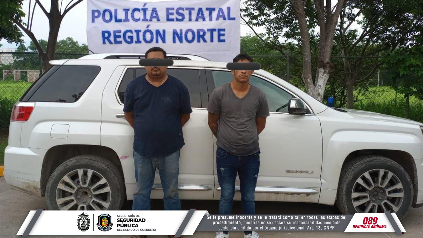 La primera acción se llevó a cabo cuando el personal de la Policía Estatal realizaba patrullajes de vigilancia y proximidad en el poblado El Tomatal del municipio de Iguala, donde identificaron a dos individuos a bordo de un vehículo y actitud sospechosa.